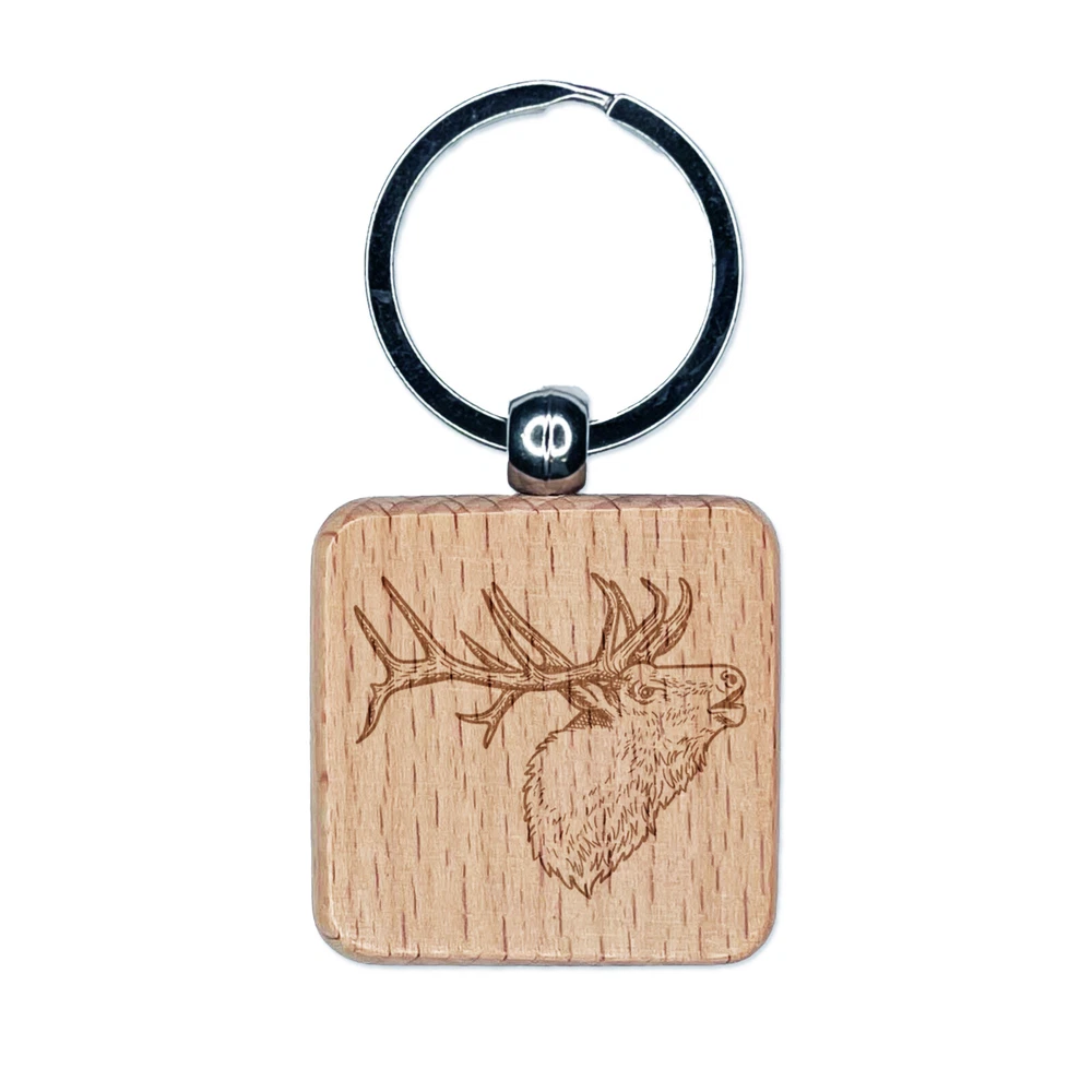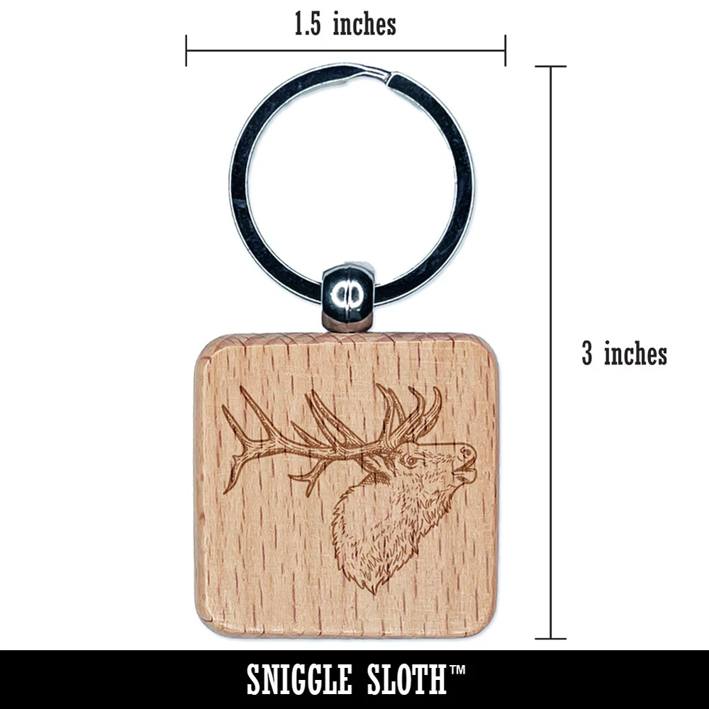 Elk Calling Out Engraved Wood Square Keychain Tag Charm