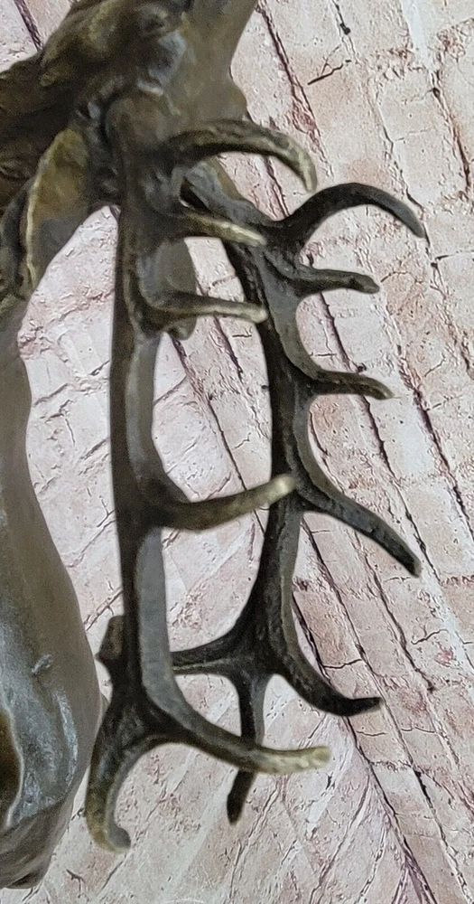 Condition : This sculpture is in perfect condition. Bronze Dimensions with Marble Base: Height 14" X Width 16" Marble Dimensions:8" X 7" Height without base:13" Weight:14 LBS Inventory:69-Y2735596 This captivating bronze sculpture brings to life the image of a magnificent Reindeer (Caribou) in a moment of vocal expression, resonating across the expansive tundra of the North. The sculpture skillfully captures the essence of the animal's call, with intricate details conveying the power and grace of this majestic creature. The breath of the Reindeer is subtly portrayed in the cold air, adding a touch of realism to the scene. Crafted using the ancient lost-wax casting method, the sculpture exemplifies the artist's dedication to preserving the beauty and spirit of wildlife in bronze. The brown patina finish enhances the textures and contours, creating a sense of depth and character. Mounted on a sleek black marble base, this sculpture becomes a focal point of admiration, with the artist Milo's signature providing an authentic seal of craftsmanship. Whether displayed in a curated art collection or as a standalone piece, this bronze sculpture captures the allure of nature and the untamed beauty of the North. It serves as a testament to the artist's skill in immortalizing the majesty of the animal kingdom and stands as a remarkable addition to any art enthusiast's repertoire. Chalet Lodge Art Elk Stag Buck Deer Hunter Bronze Marble Base Sculpture Statue Video will open in a new window Using the eBay App? Paste link into a browser window: [isdntekvideo]