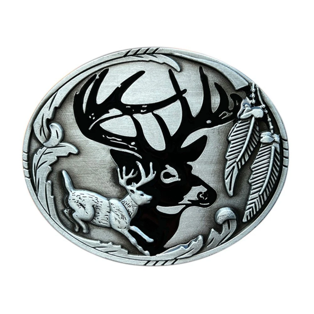 Elk Themed Western Cowboy Belt Buckle for Men & Women Rodeo Casual Wear