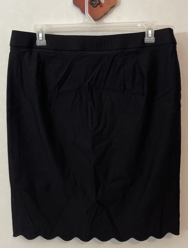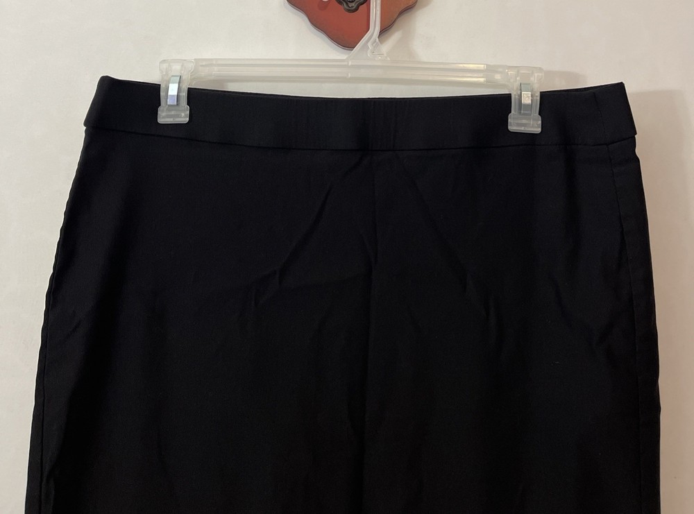 This lovely Elle Women's XL Black Elastic-Waist Pull-On Knee-Length super Stretchy Pencil Skirt is a stylish and versatile piece perfect for formal occasions and business events. Made from a blend of nylon, spandex, and rayon, this skirt offers a comfortable and stretchy fit with an elastic waist for ease of wearing. The ruffled hem adds a modern and chic touch to the classic pencil skirt style, making it a standout addition to any wardrobe. Ideal for all seasons, this skirt is a timeless and sophisticated choice for the fashion-forward woman. Length: 23 inches. Waist: 19 inches across laying flat.