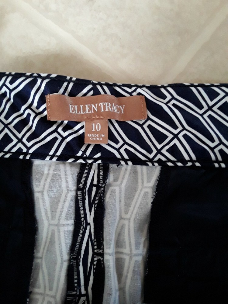 Ellen Tracy Womens Navy White Print Pencil Skirt Pockets Size 10 EUC Waist: 32" Length: 19" AT Combined Shipment: USA : Highest item shipping cost + $3.00. for each subsequent item.Or, you can purchase as many items as you choose and pay the flat rate of $ for your Priority Mail Large Flat Rate Box which covers your entire order. Please read the disclaimer below. INTERNATIONAL SHIPMENTS: Highest item shipping cost {+ Item weight.} for each subsequent item. Please read the disclaimer below. DISCLAIMER on Shipping Costs: Our intention is to keep our shipping costs as low as possible. However, depending on the item purchased (weight) and the destination, shipping rates can vary; especially 30 Day?s No Questions Asked Returns Policy: Your satisfaction is very important to us. We have a 30 days NO QUESTIONS ASKED returns policy. The item must be returned in the condition in which it was purchased. If there are labels/tags they should not be removed. If they are, the item will be sent back to you. ANY SHIPPING COSTS WILL NOT BE REFUNDED. BOTH WAYS, receiving and any returns. Please contact us for the return shipping address and authorization. ALL COMMUNICATIONS MUST BE IN WRITING & TAKE PLACE THROUGH THE EBAY SITE ONLY. No private direct email correspondence. A customer care rep. will respond to you within 24 hrs (Mon-Fri). Once we have received the merchandise and inspected it, please allow 72 hours for a refund to be issued. NO See my other listings for more great items! We accept PAYPAL. Also we have a virtual terminal with PayPal through which we can accept Visa, MasterCard, Amex, and Discover. If you do not have a PayPal account, it takes virtually minutes to open International shipments: PLEASE DO NOT PAY until we determine your shipping costs. Most of our items also have an International Flat-Rate. Although, if due to the destination or the weight we are unable to honor the rate mentioned in the item?s listing, we will cancel your order and leave you positive feedback. Usually we use the US Postal Service. The best international rate for an international shipment is First Class (up to 4 lbs.)If your items exceed 4 lbs. we may pack them into two separate packages (and notify you of this).You still are eligible to take advantage of the combined shipping rates, even if we have packed them into two separate packages. The fees for packaging, shipping, insurance, Customs Duty Charges on international shipments are all the responsibility of the Buyer and are not included in the purchase price. If the item(s) are gifts, we could indicate ?GIFT? on the customs form so you would avoid paying more on duty.