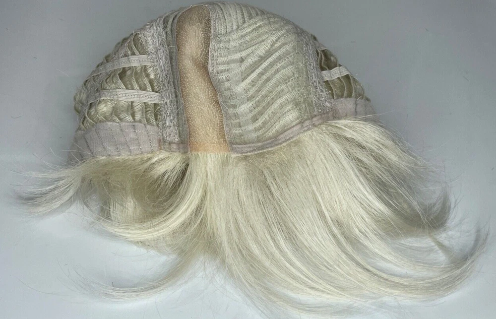 Ellen Wille Hairpower wig Synthetic Wefted Adjustable tabs in back Style = Disc Color = Platin Mix (platinum) Short layered style with sweeping bangs New with box & paperwork Will be shipped inside another box to protect original packaging We know it is difficult to find the right wig buying on the internet and you need to try it on to see how it looks and feels on YOU. We offer 30 day returns. Item must be returned in original condition, buyer pays shipping.