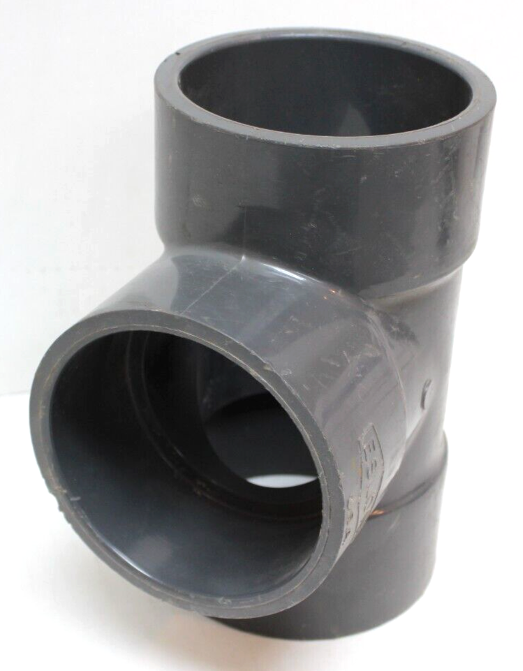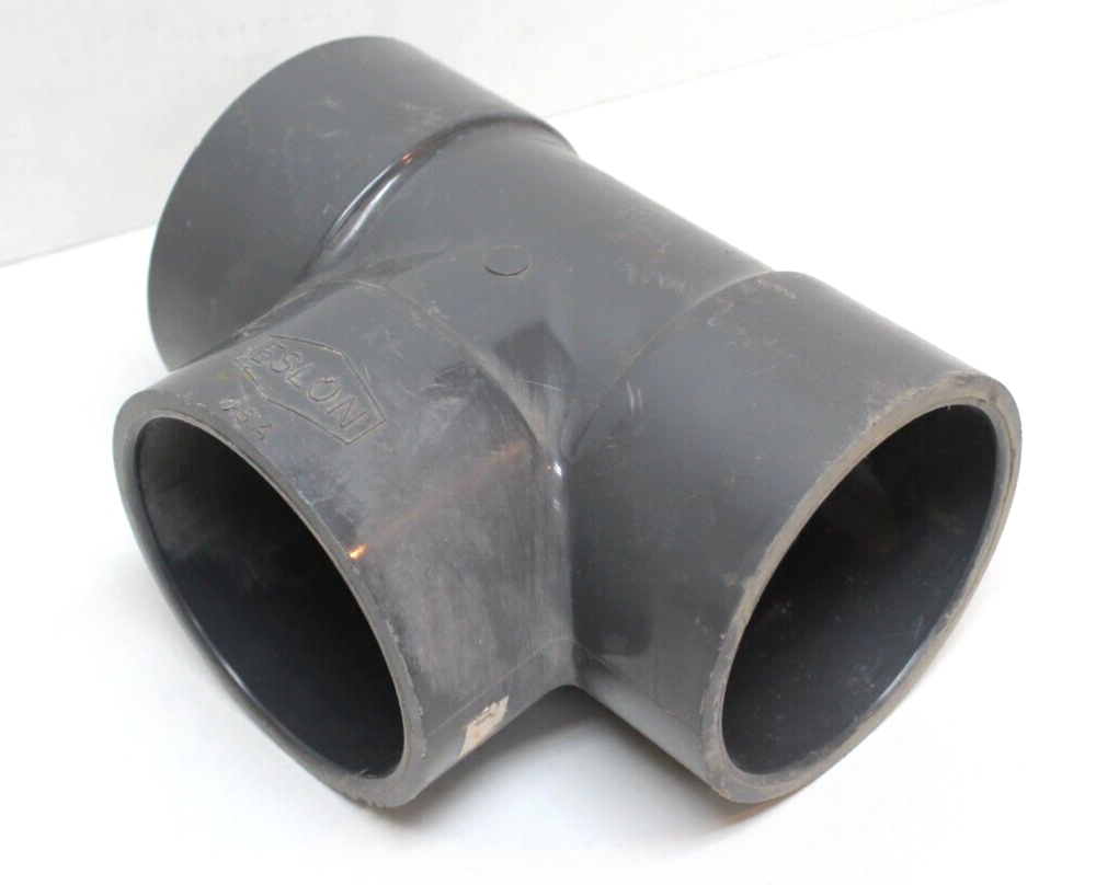 The Elson 4" Sch80 Socket Weld PVC Tee is a fitting used in plumbing systems that allows for a 90-degree connection between three pipes. Made of durable PVC material, this tee is designed for socket weld installation. It is compatible with schedule 80 pipes, ensuring a secure and reliable connection for hydraulic or pneumatic systems in industrial applications.