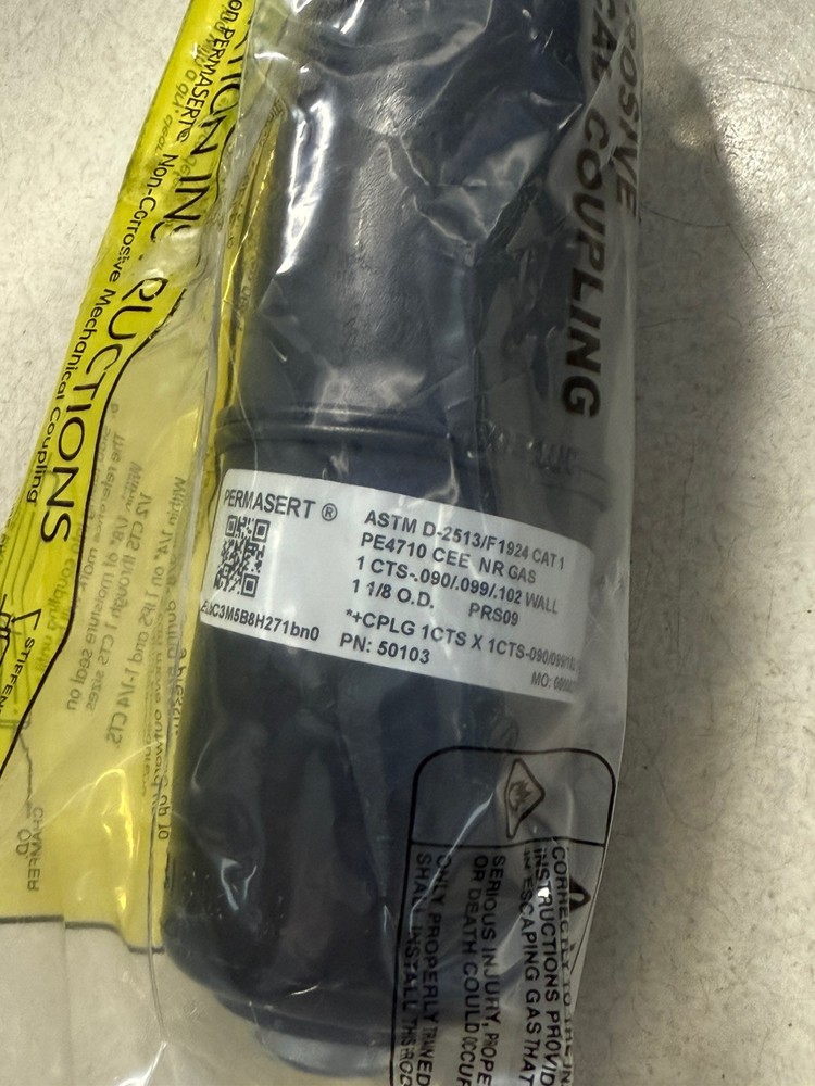 Elster Perfection Permasert 1” CTS x 1" CTS Mechanical Coupling Part No. 50103 25 pieces available, all new in package unopened. 2022 Manufacture dates. 1" CTS .090/.099/.102 Wall Compatible
