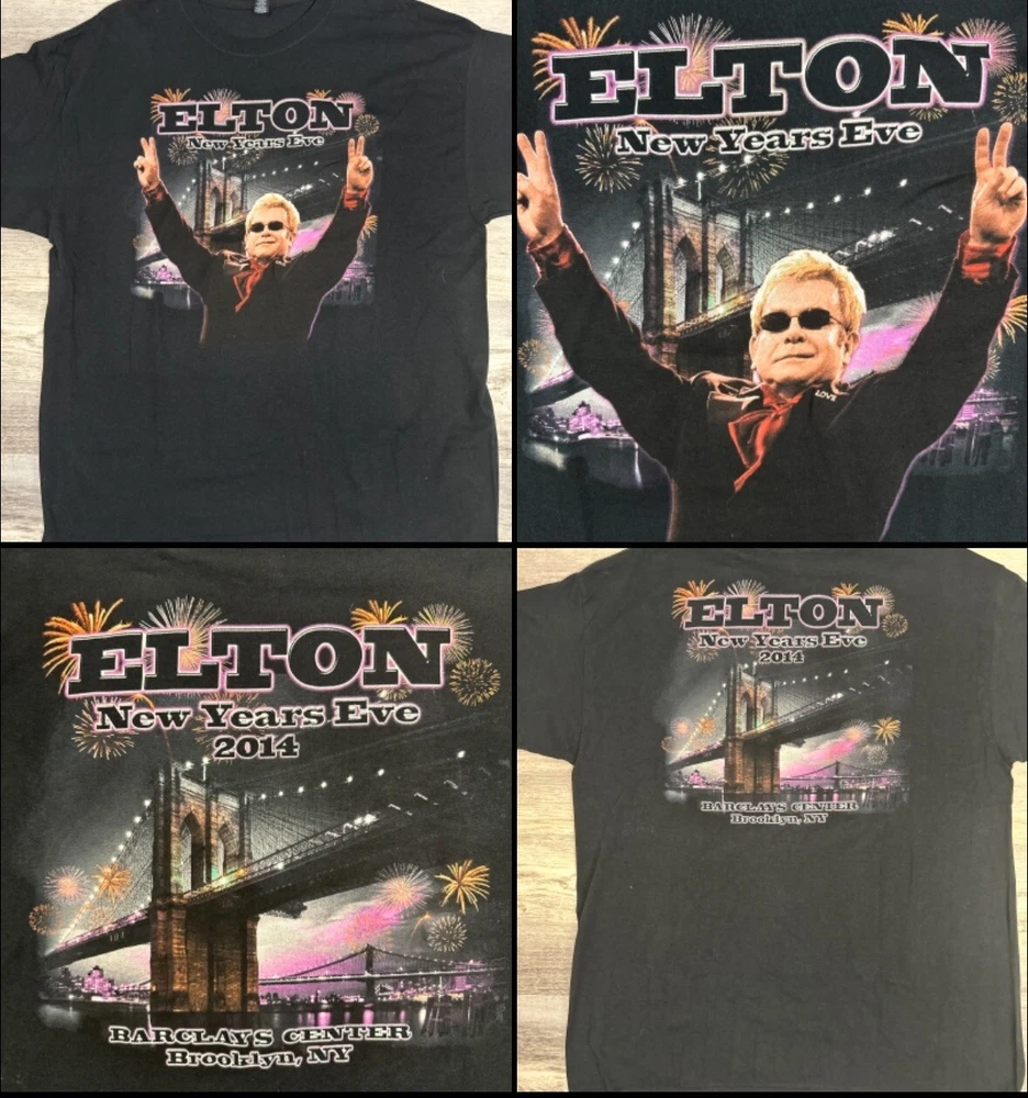 Elton John New Years Eve 2014 NY Concert T-Shirt Size XL Double Sided Excellent