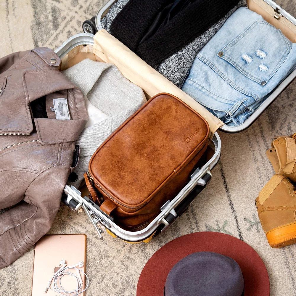 Elviros Toiletry Bag for Men, Large Travel Shaving Dopp Kit Water-resistant Bathroom Toiletries Organizer PU Leather Cosmetic Bags Description Features: WET SEPARATION: The two outside compartments can keep the wet/dry separated like wet towel or swimsuit. Dry quick and easy to clean.No worry that favorite clothes ruined by spilled shower gel or liquid WATER RESISTANCE STURDY MATERIAL: Exceptionally well built, the toiletry bag is made of PU leather, water-resistant nylon lining to keep moisture out of the bag. Premium zipper and reinforced seams are also implemented for long-lasting performance WATERPROOF SHOE & HAIR DRYER BAG: Includes a waterproof drawstring pouch to store gym shoes, dirty clothes, blow dryers, or gym essentials. Made from leak-proof fabric to protect against sweat, moisture, and locker-room messes ideal for fitness routines, travel, or trending hygiene-conscious lifestyles UPGRADE LARGE CAPACITY: Multiple pockets inside, which can contain most of your toiletry necessaries orderly in the bag. Large toiletry bag size: 12"L x 6.9"H x 6.5"W(30.5 CM*17.5 CM*16.5 CM) DOUBLE ZIPPER LARGE OPENING: This long-lasting toiletry bag features a unique double zipper design, which allows for easy access to its inner contents. Simply pull on the connected zip puller for full exposure Product Details: Product Dimensions: 12 x 7.1 x 6.7 inches Item Weight: 13.4 ounces Department: Unisex Manufacturer: Elviros Country of Origin: China Item model number: ELV17000261BR Handling We will ship all orders within 3 business days of payment. Delivery We do not ship outside of the Continental US. Feedback We take our reputation seriously, we buy and sell online, so we understand the value of trust. If you are unsatisfied with your order, please contact us and we will work with you to resolve it to your satisfaction.