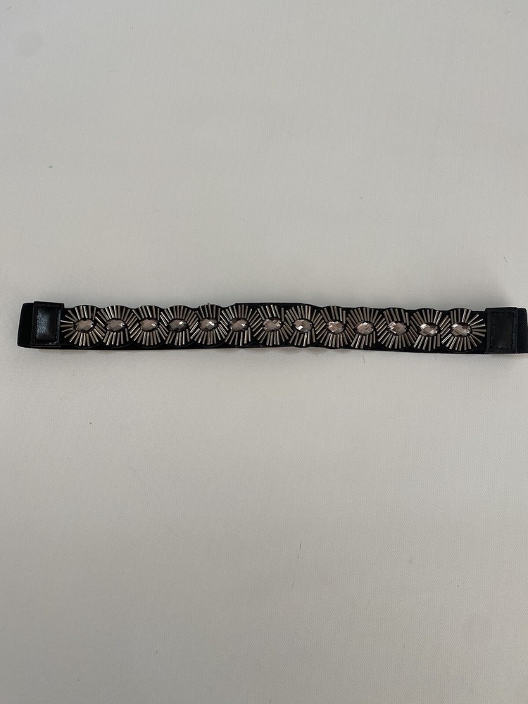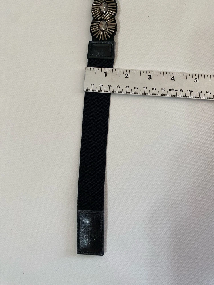 This gorgeous black waist belt is embellished with beads and is perfect for adding some extra style to any outfit. The belt is made of elastic material and is adjustable to fit waist sizes between 29-30 inches. It features no buckle and is easy to slip on and off. The belt is a size L and has a medium belt width. It is a great addition to any wardrobe and can be paired with dresses, skirts, or pants. The unique beaded accents add a touch of elegance and make it stand out. This waist belt is a must-have for any fashion-forward woman. Condition of the belt is sore-Owned in great shape! Shipped asap by USPS Ground advantage Mail.