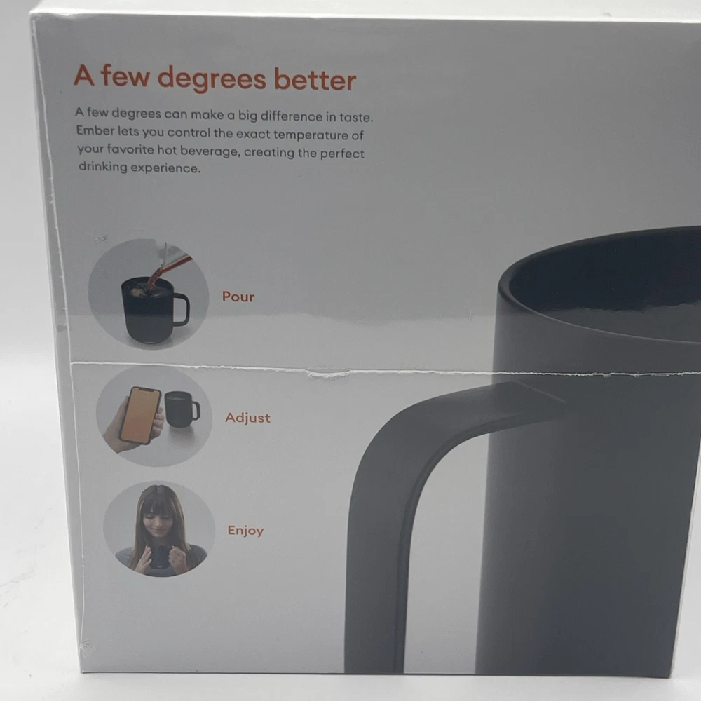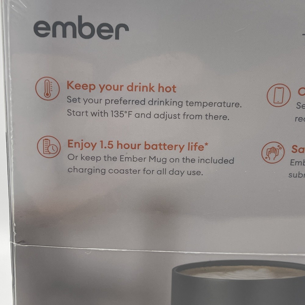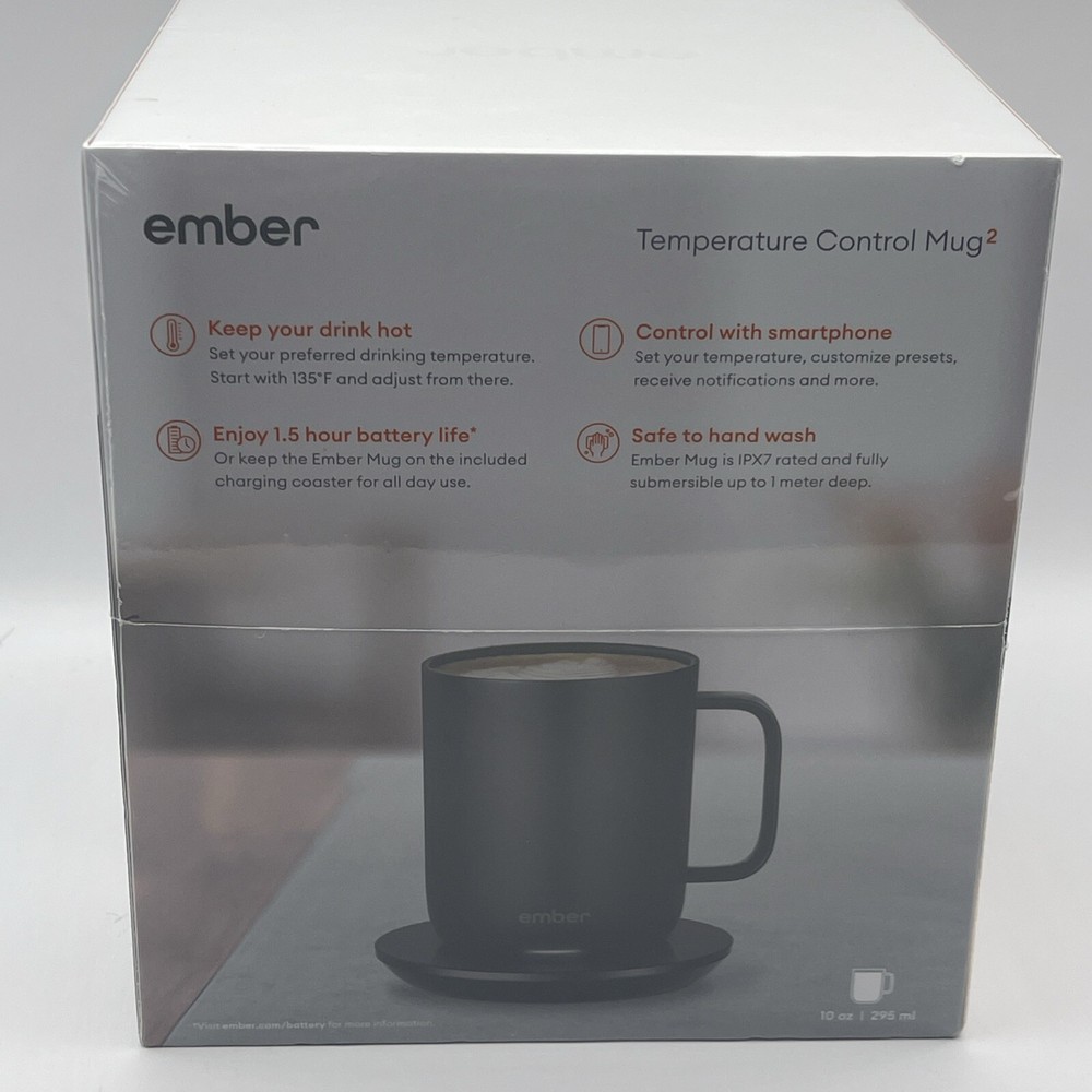 The Ember 10 oz. Temperature Control Smart Mug 2 in black is a smart mug that allows you to control the temperature of your hot beverages using the Ember App. It features LED indicators and is made of stainless steel. This brand new sealed mug is designed for home and kitchen use. Serial Number is recorded prior to shipment. If purchased you will receive a message including the serial number for your device. Thanks for looking!