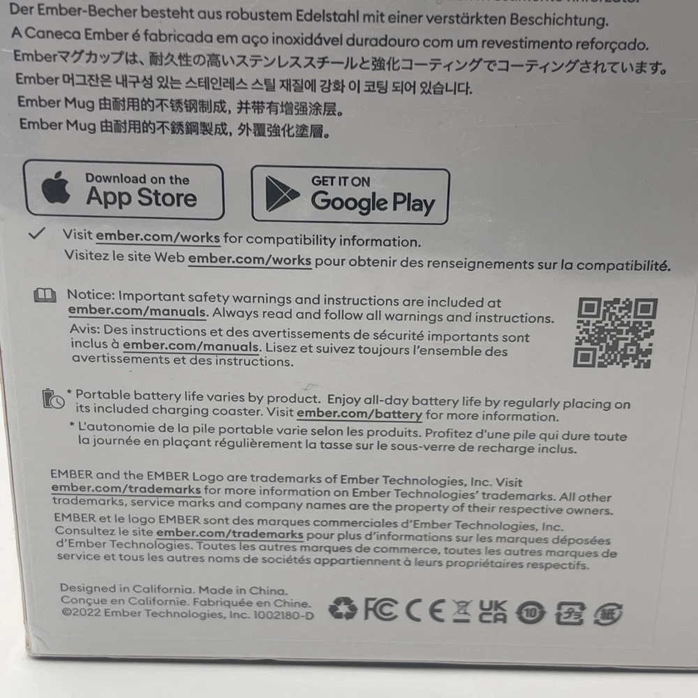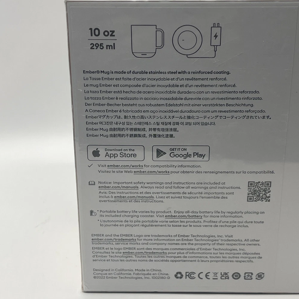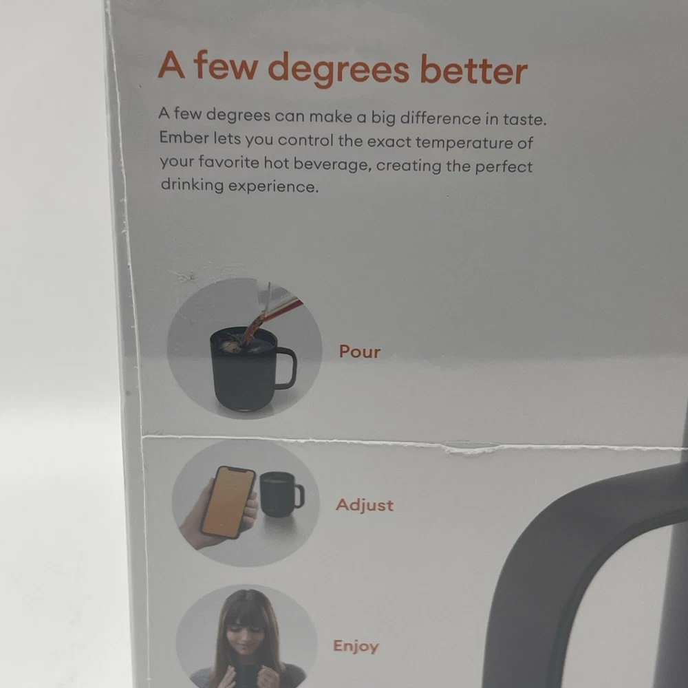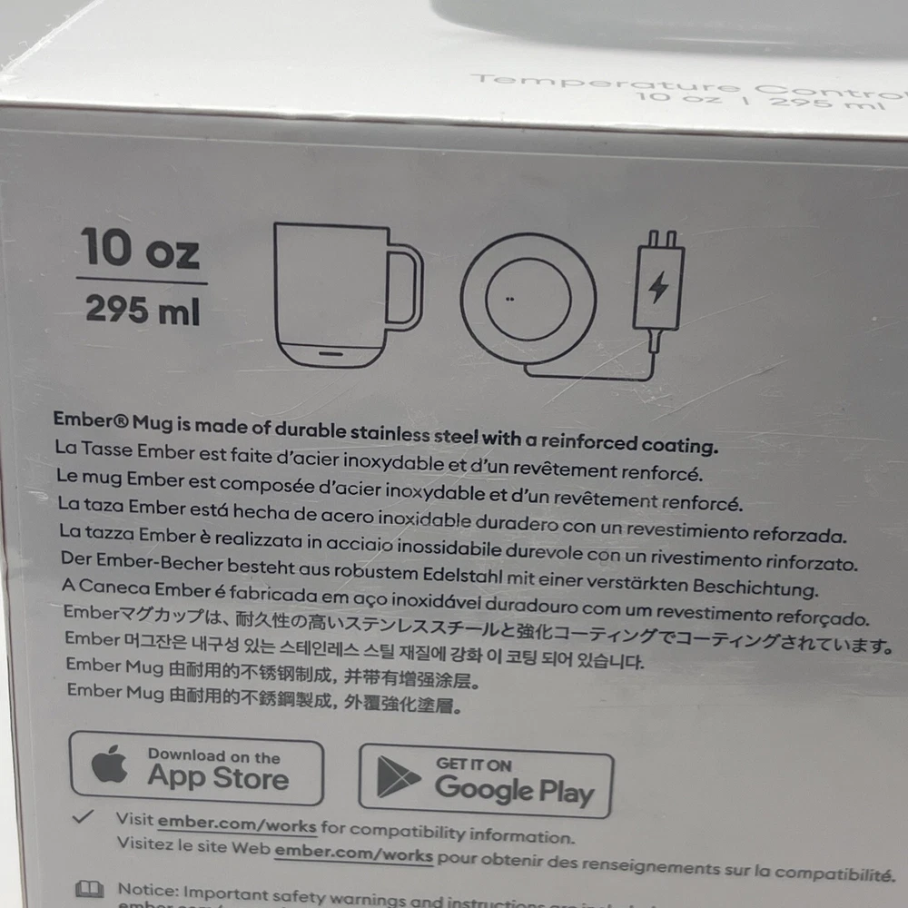 The Ember 10 oz. Temperature Control Smart Mug 2 in black is a smart mug that allows you to control the temperature of your hot beverages using the Ember App. It features LED indicators and is made of stainless steel. This brand new sealed mug is designed for home and kitchen use. Serial Number is recorded prior to shipment. If purchased you will receive a message including the serial number for your device. Thanks for looking!