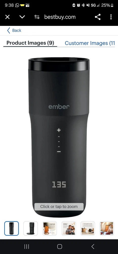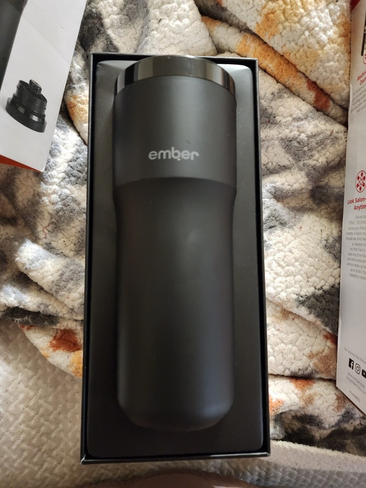 Keeps your hot drink at the exact temperature you prefer (between 120 degrees Fahrenheit to 145 degrees Fahrenheit). Start with 135 degrees Fahrenheit and adjust up or down. 2 hour battery life on a single charge. Or keep the Ember Travel Mug on the included charging coaster for all day use. Control with your smartphone. Pair with the Ember App to set your temperature, customize presets, receive notifications and more. Ember Travel Mug also allows you to set your preferred drinking temperature directly from the mug. Safe to hand wash. Ember Travel Mug is IPX7 rated and fully submersible up to 1 meter deep. Leak Proof lid for on the go use. Ember Travel Mug and its app also allow you to track your caffeine consumption, save presets for your favorite drinks, customize the LED color, and more