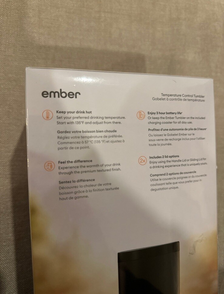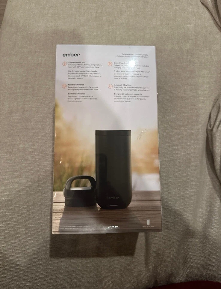 Brand new never opened Black color Introducing the Ember 16oz Temperature Control Smart Tumbler in Slate Black, Model CM21XL17AM. This tumbler is perfect for those who want to enjoy their hot or cold beverages at the perfect temperature. The tumbler is made of stainless steel and comes with a lid, making it suitable for on-the-go use. The tumbler has a capacity of 16 oz and stands at a height of 7.01". It has a width of 3.27" and comes in a stylish black color. This product is perfect for those who want to keep their beverages at the perfect temperature without compromising on style.