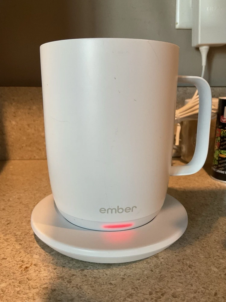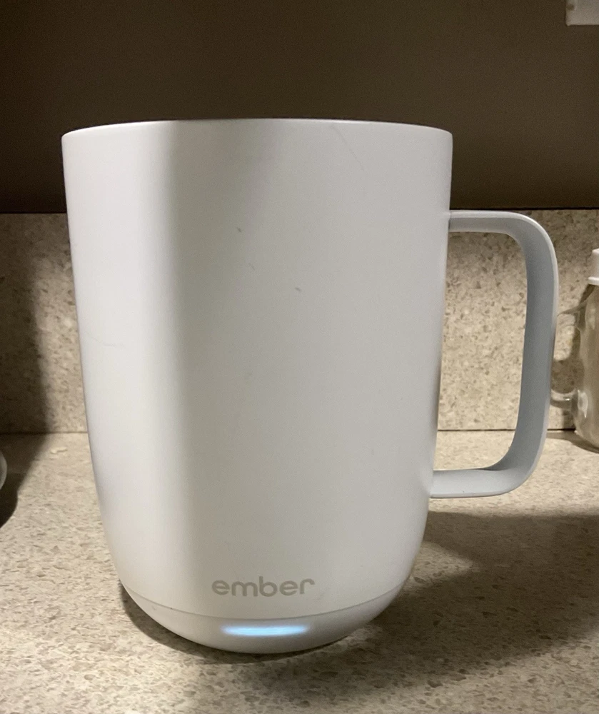 Ember CM17 10oz Temperature Control Smart Mug Base & Charger White Pre-owned condition. Please note there are small scuff marks on the exterior and light utensils marks on the interior of mug as shown in pictures. Ships via USPS ground advantage. Thanks for looking! SKU B4