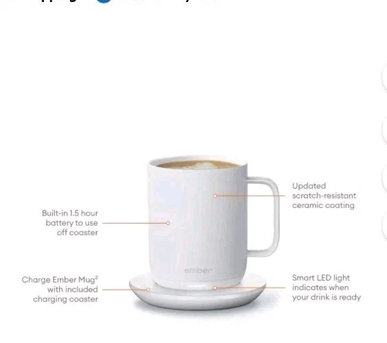 Ember Temperature Control Smart Mug 2, 10 Oz, App-Controlled Heated Coffee Mug New winter ready office home cabin great gift coffee tea hot chocolate cappuccino New in box ships same day!