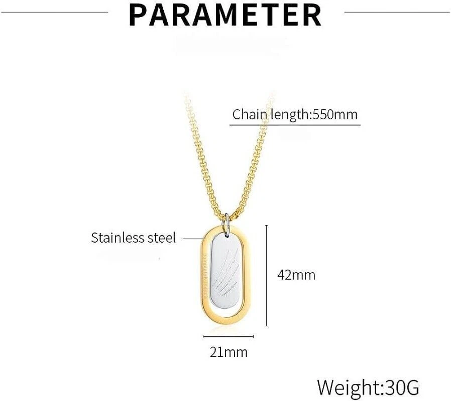 Unleash your style with our Hip-Hop Necklace, featuring a minimalist stainless steel design that's completely insane! With a pendant size of 42*21mm, our claw marks pendant is the perfect statement piece to show off your unique style and personality. Weighing only 30g, you'll forget you're even wearing it as you dance the night away. This hip-hop style necklace has a necklace length of 60cm, making it the perfect length for both men and women. Brand: Cy trendy Metal (Pendant): 316L Stainless Steel Metal (Chain): 316L Stainless Steel Pendant Size: 42mm*21mm Chain length: 60cm Pendant Weight: 30g We offer high quality rings and necklaces,The 316L stainless steel do not suffer corrosion,tarnish or rust when expose in wet environment, it is one of the best metal when choosing rust resistance rings and necklaces because of it's sufficiently reactive to protect itself from further attack by forming passive corrosion product layer Package include : 1 x necklace