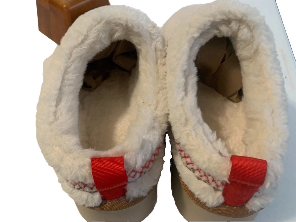 Sherpa Clog Style Slipper Size: 7 / 8 Features & Accents: White, Sherpa lined, Embroidered with Red gives it a festive look, Easy Slip in there Condition. New, No Box or Tag. Never Worn. Smoke Free Home. Same day shipping if purchased by 3:00 PM, EST. International Sales Ship through Ebay International Shipping Program. Free Returns. We truly try to disclose all information on items we list. However if we miss something, please contact us before leaving negative feedback and allow us to resolve the problem or issue a returns. Your choice. Thank you.
