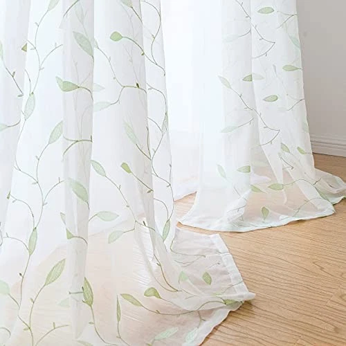 Return Policy Fast Delivery Trusted seller Embroidered Sheer Curtains Floral Leaf White Sheer Curtain for Bedroom Living Room Kitchen Rustic Voile Drapes Privacy Window Treatment Set of 2 Panels 96 Inches Long Grommet Top Green on White Product Description Ready Made: Package includes 2 embroidery leaf sheer curtains. Each measures 55"W (110"W for pair). Each semi sheer curtain panel features with 1.6" matte silver grommet which suit standard or decorative curtain rod. Easy hanging and smoth open-close! Delicate Embroidered Design: Its leaf graphic pattern with a translucent drape design, bringing both vintage airy and refined style to the room, while the delicate embroidery create dimensional highs and lows for added depth. Get these to create a light and airy comfy room! Light Diffusing: Our voile sheer curtain is designed to help you work, sleep and live with less distraction from the sun's rays. Made with quality material that looks lightweight and elegant, it also blocks unwanted light and offers just the right amount of privacy. Versatility: These sheer window treatments are available in variety of sizes, which looks great for bedroom, living room, dining room, nursery, kitchen, sliding door, doorway. These panels are suitable for casual, vintage and european style. Easy Care: Our cute sheer curtain are made to last. They can withstands machine wash in cold water and tumble dry in gentle setting. Shipping Returns Payment Shipping Shipping is FREE to all addresses other than APO/PO boxes in the lower 48 states. All our stock ships from US-based warehouses. Shipped via USPS or UPS (depending on location and package weight) Unless stated otherwise, all orders will ship within 24-72 hours of your payment being processed. Check our feedback to see the great reviews of FAST shipping we offer. Returns Seller does not accept returns Payment We currently accept payment via eBay managed payments only. Once payment is cleared, we will dispatch your shipment within 1-3 business days. Please refer to the "Shipping" tab for more information regarding shipping speed to your destination.