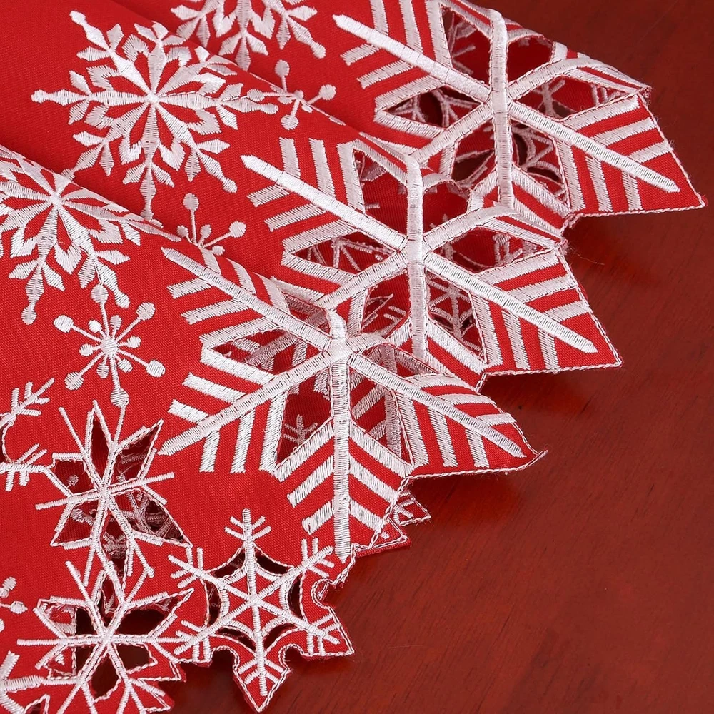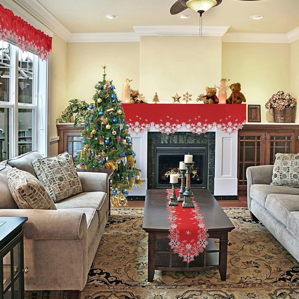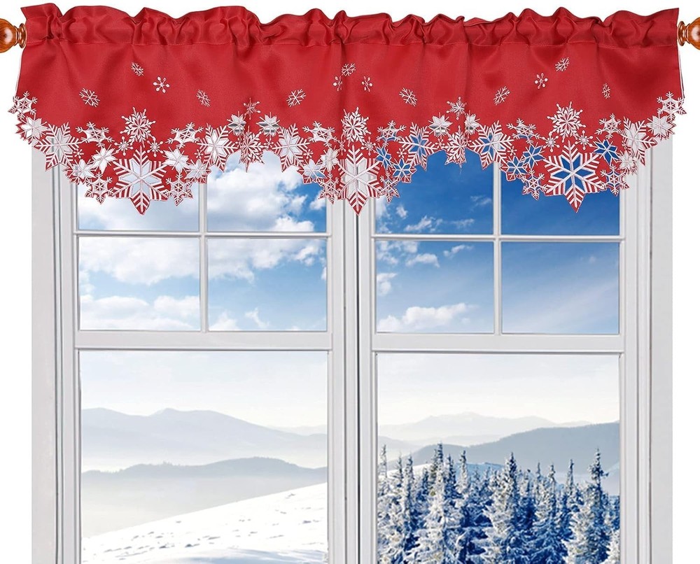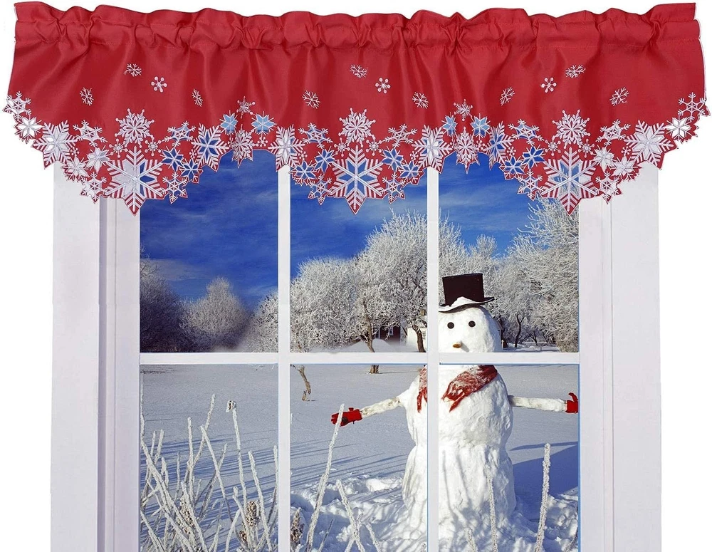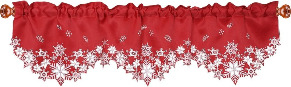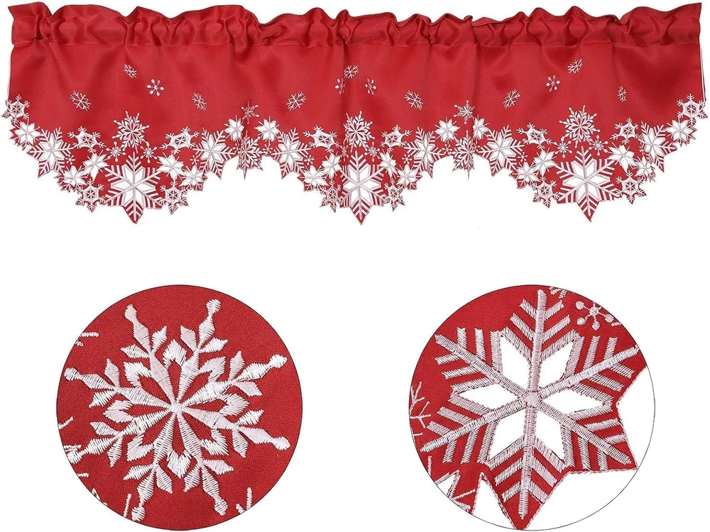 Embroidered Snowflakes Kitchen Window Curtain Valance W 58 × L 15 Inches, for Christmas Holidays Decorations Snowflakes red Beautiful embroidery on a red background Made of 100% polyester, imported Applied to Rod’s size less than 2 inches Can be used over and over again Either machine or hand wash; it does appear to hold up in the wash; dry-cleaned accepted as well; slightly steam iron