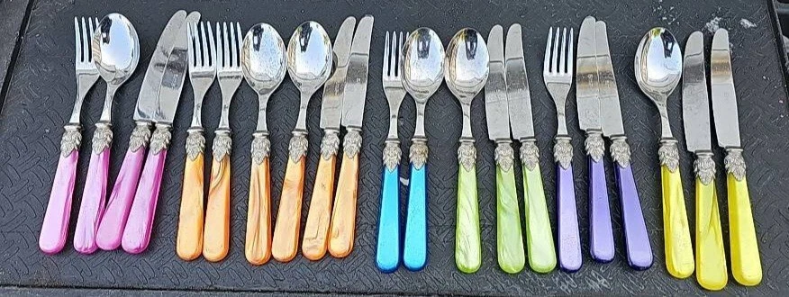Eme Napoleon Multi Colored Stainless Flatware. Condition is Used. Shipped with USPS Ground Advantage.