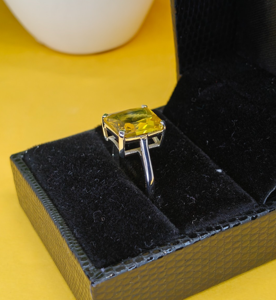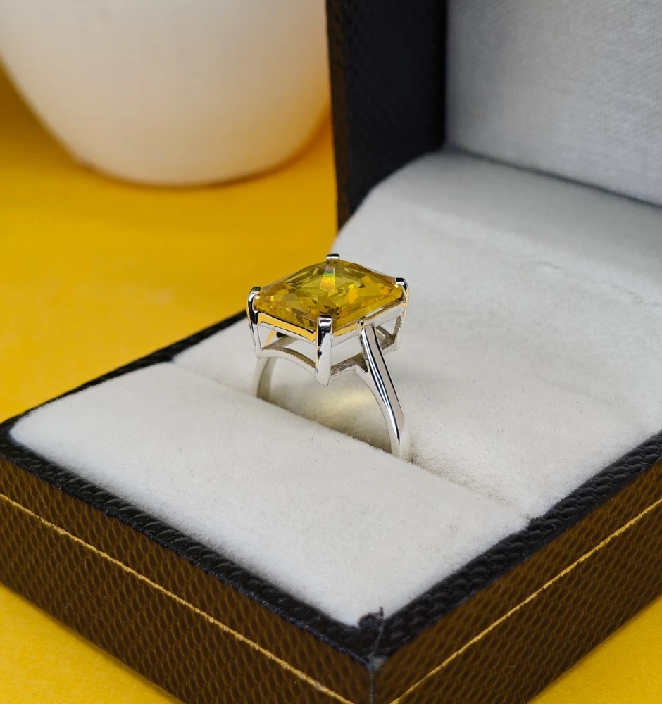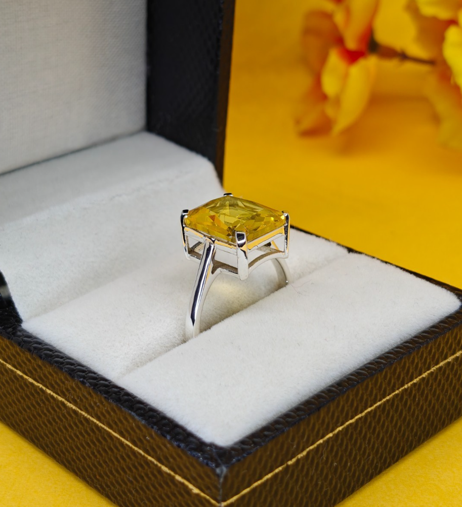 This Emerald Cut Citrine Ring is a stunning piece of handmade jewelry crafted with 925 sterling silver. The lab-created citrine stone in a yellow color with excellent cut grade is set in a prong setting, making it a perfect gift for various occasions like engagement, weddings, anniversaries, birthdays, and Valentine's Day. The ring also features nickel-free properties, adding to its quality and appeal. Made in India, this unique ring exudes beauty, art, and elegance, making it a standout piece for any jewelry collection. ๐๐ฉ๐๐๐ข๐๐ข๐๐๐ญ๐ข๐จ๐ง๐ฌ ......... ๐๐๐ฆ๐ฌ๐ญ๐จ๐ง๐ : Citrine โ Gemstone Shape: Emerald Cut โ Gemstone Colour: Yellow โ Gemstone Size: 10x12 ๐๐๐ญ๐๐ซ๐ข๐ l: 925 Sterling Silver โ Colour: Silver โ Gross Weight: 3.00gm (approx.) ๐"As manufacturers, we can create this gemstone stud earrings in various colours, shapes, and sizes. Custom designs are welcome...๐ธ โจ ๐๐๐๐๐ผ๐บ ๐ข๐ฟ๐ฑ๐ฒ๐ฟ๐ & ๐ฃ๐ฒ๐ฟ๐๐ผ๐ป๐ฎ๐น๐ถ๐๐ฎ๐๐ถ๐ผ๐ป We love making jewellery thatโs as unique as you are! If you have a custom design idea or want to adjust the size of any item, just send us a message. Weโre happy to create something special tailored just for you. Custom Orders May Require Additional Time For Crafting . ๐ฆ ๐ฆ๐ต๐ถ๐ฝ๐ฝ๐ถ๐ป๐ด ๐ข๐ฝ๐๐ถ๐ผ๐ป๐ We Use UPS Express and Standard Shipping Service: For express delivery please contact us to make sure product reach you on time. Products are fully insured for loss or theft during transit. โ RETURNS accepted for valid reason. You will get refund or exchange within 15 days of your delivery date. โ NOTE: All Import taxes and duties vary from country to country and buyers are responsible for their country taxes and duties. Visit our Shipping Policy page for more details. In order to minimize the duty in your country, please contact us. โ NOTE: 925 Sterling silver jewellery can tarnish over time or depends on usage. We are not liable for the same. Therefore, please use it gently. โญ ๐๐ฒ๐ฒ๐ฑ๐ฏ๐ฎ๐ฐ๐ธ Your happiness means the world to us! If you love your order, please consider leaving a positive review and a five-star rating. Your support helps our small business grow and thrive. โจ ๐ข๐๐ฟ ๐ท๐ฒ๐๐ฒ๐น๐ฟ๐ ๐ถ๐ ๐ต๐๐ฝ๐ผ๐ฎ๐น๐น๐ฒ๐ฟ๐ด๐ฒ๐ป๐ถ๐ฐ โ ๐๐ต๐ผ๐๐ด๐ต๐๐ณ๐๐น๐น๐ ๐ฐ๐ฟ๐ฎ๐ณ๐๐ฒ๐ฑ ๐๐ถ๐๐ต๐ผ๐๐ ๐๐ฎ๐ฑ๐บ๐ถ๐๐บ , ๐๐ฒ๐ฎ๐ฑ , ๐ผ๐ฟ ๐ก๐ถ๐ฐ๐ธ๐ฒ๐น ๐๐ผ ๐ฒ๐ป๐๐๐ฟ๐ฒ ๐๐ฎ๐ณ๐ฒ ๐ฎ๐ป๐ฑ ๐ฐ๐ผ๐บ๐ณ๐ผ๐ฟ๐๐ฎ๐ฏ๐น๐ฒ ๐๐ฒ๐ฎ๐ฟ ๐ณ๐ผ๐ฟ ๐ฒ๐๐ฒ๐ป ๐๐ต๐ฒ ๐บ๐ผ๐๐ ๐๐ฒ๐ป๐๐ถ๐๐ถ๐๐ฒ ๐๐ธ๐ถ๐ป . ๐ ๐ก๐ฒ๐ฒ๐ฑ ๐๐ฒ๐น๐ฝ ? Questions or concerns? Feel free to message us any time before or after your purchase. Weโre here to assist and love hearing from you! Thank you so much for supporting our shop! ๐