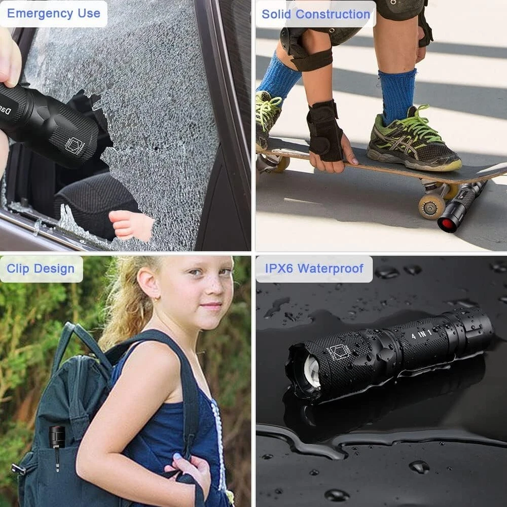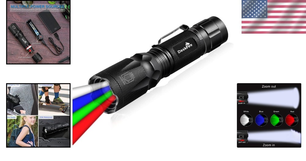Emergency Multi-Color Flashlight with Charger & Bracelet: Ultimate Camping Gear ‹ › ‹ › ‹ › ‹ › ‹ › ‹ › ‹ › ‹ › ‹ › Emergency Multi-Color Flashlight with Charger & Bracelet The Ultimate Camping Gear Features: Ultra Bright Zoomable Flashlight: Illuminate clearly up to 200 yards with the powerful XML RGBW LED. Focusable beam allows you to aim at your targets effectively. Durable Hunting Flashlight Kit: This windproof and rainproof flashlight comes with a compact bracelet featuring a compass, whistle, fire starter, and cutter—essential gear for campers and hunters. Easy to Use Torch Light: Enjoy 4 color lights (White, Blue, Green, and Red) that run in sequence with a convenient press of the rear button. Features one-touch On/Off functionality and a half-press for color changes. Handy Design: Fits comfortably in every jacket pocket, making it an ideal choice for your car or backpack. Multi-Function Flashlight: Perfect for a variety of activities: White light for night walks and emergencies, Blue light for attracting fish, Green light for nocturnal wildlife surveys, and Red light for creative nighttime photography. Why Choose Our Emergency Multi-Color Flashlight? Are you ready to enhance your outdoor escapades with unmatched visibility and versatility? This Emergency Multi-Color Flashlight is designed for those who dare to explore, offering ultra-bright illumination and a variety of features tailored to your camping and hunting needs. With its compact design and included multi-functional bracelet, you will be equipped for any situation—be it signaling for help or navigating through the night. Its durable, weatherproof build ensures reliability in all conditions. Don’t leave your safety and functionality to chance—experience the ultimate camping gear. Order your Emergency Multi-Color Flashlight today and light up your adventures! Shipping Free & Fast Shipping - We offer free shipping to most of the USA with a normal delivery time of 3-7 days. However, due to the current situation, additional delivery time (up to 3 weeks) may be required for some items. Alternative Carriers - We may use alternative carriers (e.g. USPS, FedEx, UPS, etc.) to ensure your package arrives safely and on time. Due to the use of multiple carriers, we are unable to provide a tracking number automatically. Handling Time - Orders are processed and shipped within 1-2 business days of receiving cleared payment. Shipping Restrictions - Shipping to Alaska, Hawaii, Puerto Rico, Guam, and other US territories may incur shipping charges or delivery restrictions. Please contact us before ordering, or your order can be refunded/cancelled. State Restrictions - There may be restrictions based on your state of purchase. For example, certain items may not be shipped to California due to state regulations. Contact for Tracking Updates - If you require tracking updates or have any concerns about the delivery of your order, please feel free to contact us, and we will be happy to assist you. Return 30-Day Hassle-Free Returns - We want you to be completely satisfied with your purchase. If you are not, you can return the item within 30 days of receiving it for a full refund or exchange. Easy Return Process - To start a return, simply contact us and we will provide you with a prepaid return shipping label and detailed instructions. Restocking Fee - There are no restocking fees for returns. However, the buyer is responsible for return shipping costs if the return is not due to a seller's error. Refund Processing Time - Refunds will be processed within 5 business days of receiving the returned item in its original condition. Payment We accept all major credit cards, PayPal, and Apple Pay for your convenience. Your payment information is secure and encrypted to ensure a safe and seamless transaction. Please complete your payment within 3 days of purchase to avoid any delays in shipping. Feedback Your feedback is extremely important to us. We strive to provide the best products and customer service possible. If you are satisfied with your purchase, please take a moment to leave us a positive review. If you have any concerns or issues with your order, please contact us before leaving negative feedback. We are committed to resolving any problems and ensuring your satisfaction. Contact Us If you have any questions or concerns, please feel free to reach out to our customer support team. You can contact us through the eBay messaging system. We are available Monday to Friday, 9:00 am to 5:00 pm EST, and we will do our best to respond to your inquiry within 24 hours. Thank you for supporting our small family business! UPC: Not Set Voltage: 3.7 volts Item Height: Rechargeable Flashlight Item Length: Rechargeable Flashlight Item Weight: 0.63 ounces Item Width: Not Set Model: Not Set Lumens: 900 Number of LEDs: 1 Unit Quantity: 1 Features: Rechargeable,Waterproof,Zoomable,Windproof,Multi-color light,Emergency signal,Compact design Material: Aluminum Brand: Unbranded Type: Flashlight Lighting Technology: LED Power Source: Battery Operating Range: 202 m MPN: Not Set Battery Technology: Li-Ion Number of Batteries: 1 Color: Multicolor Country/Region of Manufacture: Not Set IP Rating: Water resistant Operating Time: 3 hours Number of Lights: 1-3 Unit Type: oz Personalize: Not Set