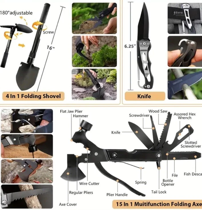 This 250-piece survival kit is perfect for emergency situations, whether you're backpacking, hunting, camping, or hiking. The kit includes a whistle, multi-tool, emergency blanket, paracord, fire starter, flashlight, compass and much much more. The items are made of high-quality materials and are suitable for various outdoor activities. The kit is lightweight and compact, making it easy to carry in your backpack. Get prepared for any emergency with this reliable and versatile survival kit.