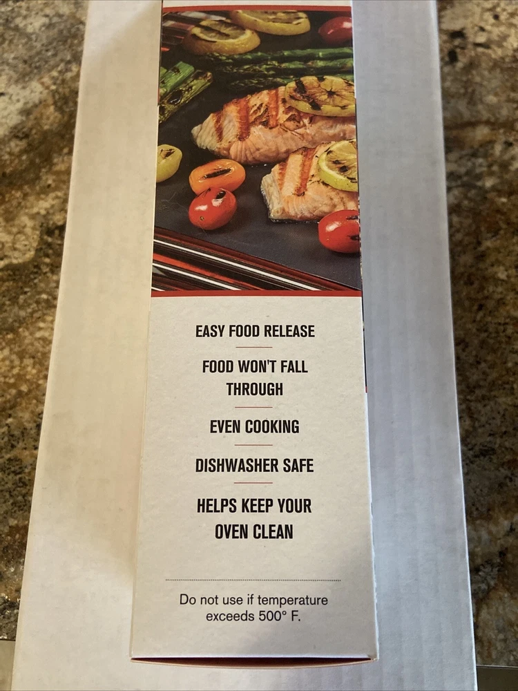 Style: Modern Features: Easy Clean, Non-Stick, Reusable Size: 13X15.75” Set Includes: Grill and Bake Mat Type: Cooking Grid Handle Material: N/A Non-Domestic Product: No Head Material: N/A Brand: Emeril Lagasse Custom Bundle: No Color: Black Modified Item: No Number in Pack: 2