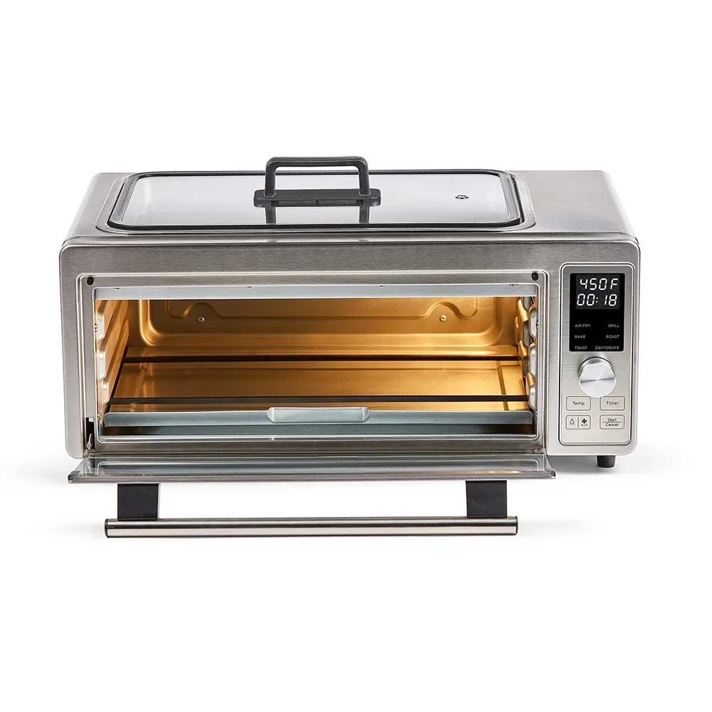 Experience the versatility of the Emeril Lagasse Power Grill 360 Plus, a 6-in-1 countertop convention oven that's perfect for any kitchen. Crafted from durable stainless steel, this rectangular grill and griddle pan boasts an electric power source, ensuring consistent and efficient cooking. Its sleek silver finish complements any kitchen decor, while the robust construction promises longevity and ease of maintenance. Designed for convenience, this unit can handle a variety of appliances capabilities, from cooking meat to beating vegetables, making it a versatile addition to your cooking arsenal. Whether you're a professional chef or a home cook, the Emeril Lagasse Power Grill 360 Plus is a must-have for its practicality and cooking capabilities.