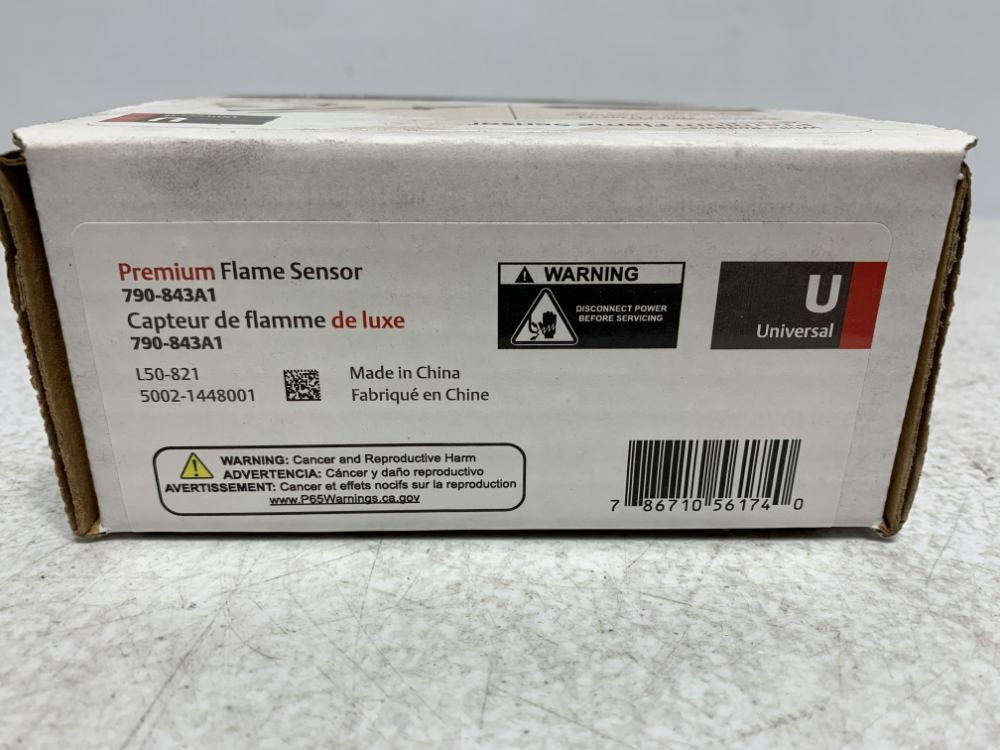 PRODUCT DESCRIPTION Emerson 790-843A1 Flame Sensor 2200 degF Universal This is a New Emerson 790-843A1 Flame Sensor 2200 degF Universal. It is designed for reliable performance in various heating applications. Product Details: - Brand: Emerson - Manufacturer Part #: 790-843A1 - Condition: Brand new, unused, and in original packaging. - High temperature rod withstands up to 2200°F (1204.44°C). - Can be bent or cut to replace over 120 part numbers. Shipping: Will ship USPS Ground Advantage - Free Shipping. Expedited shipping options available at checkout. Find one of our products cheaper elsewhere? We will beat the price. Feel free to make an offer. © Copyright Chase Surplus, Inc. All rights reserved.