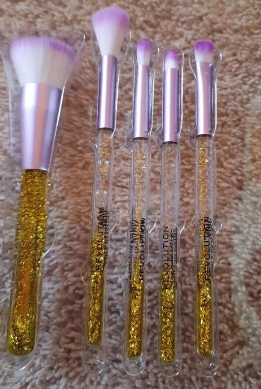 Emily In Paris Tres Chic 5-Pc Gold Glitter Makeup Brush Set By Makeup Revolution