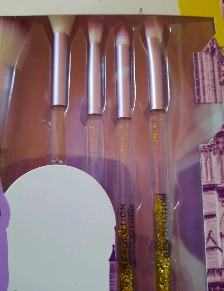 HomeEmily In Paris Tres Chic 5-Pc Gold Glitter Makeup Brush Set By Makeup Revolution