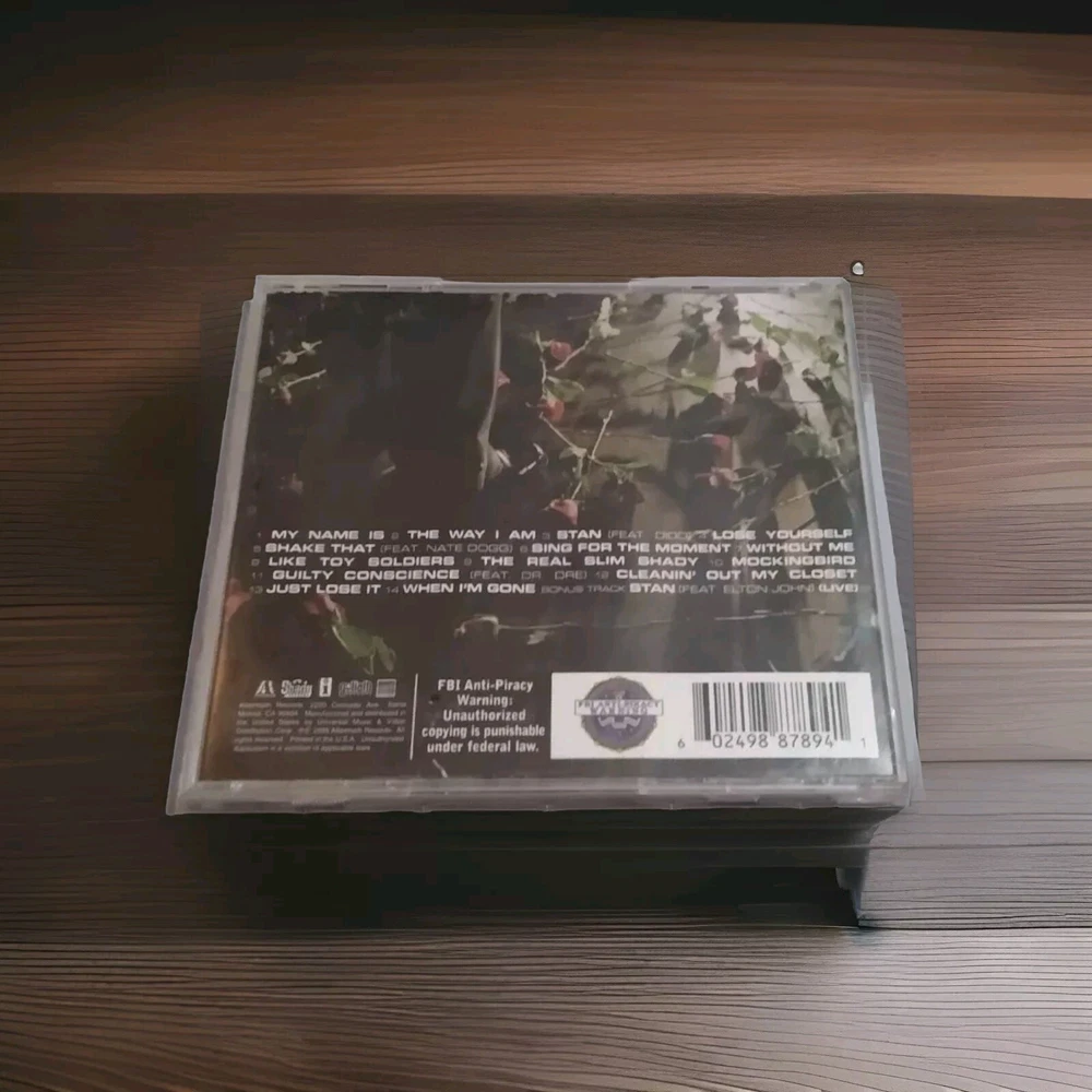 This CD features the greatest hits from the iconic artist Eminem. With a collection of songs from his early days to his more recent releases, this album showcases his talent and influence in the rap and hip-hop genre. The CD comes in good condition, with all tracks playing smoothly and the case and cover in good condition. Get ready to be blown away by the lyrical prowess of Eminem with this must-have addition to your music collection. Perfect for fans of rap and hip-hop, this CD is a timeless classic that you don't want to miss. Upstairs