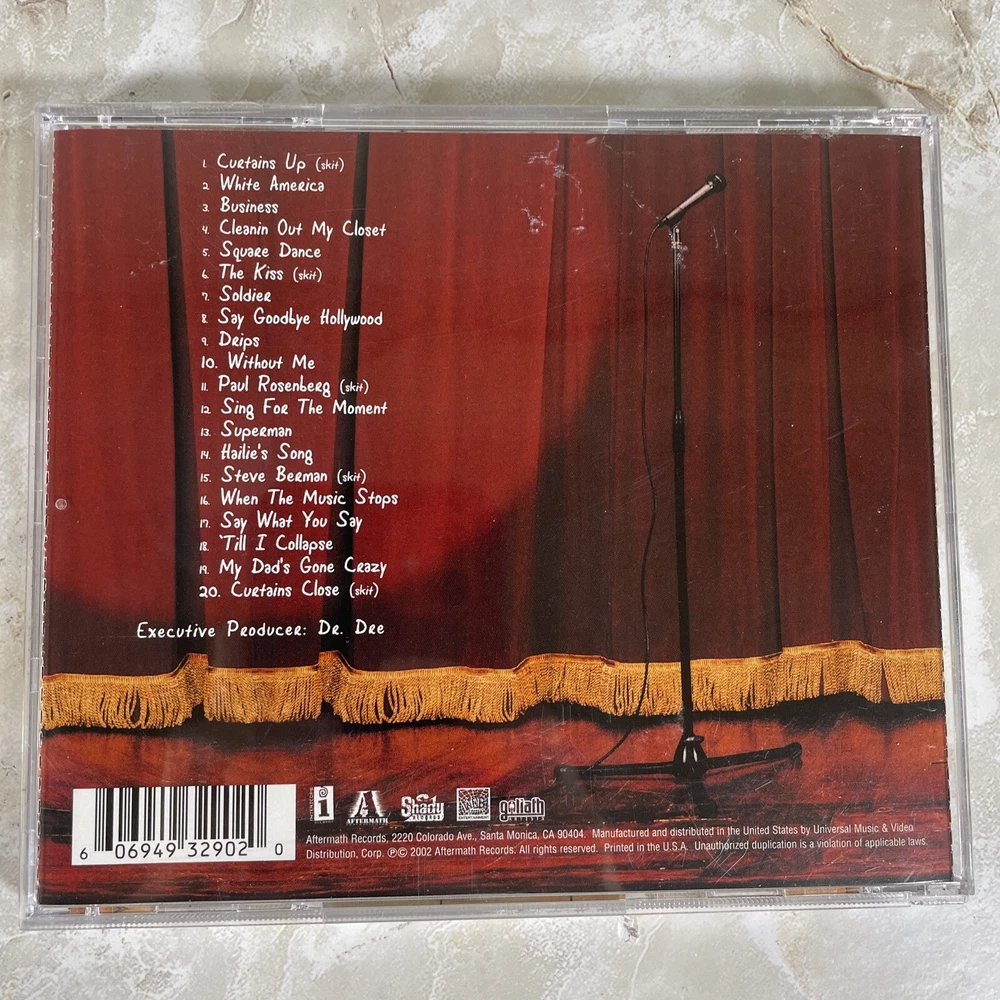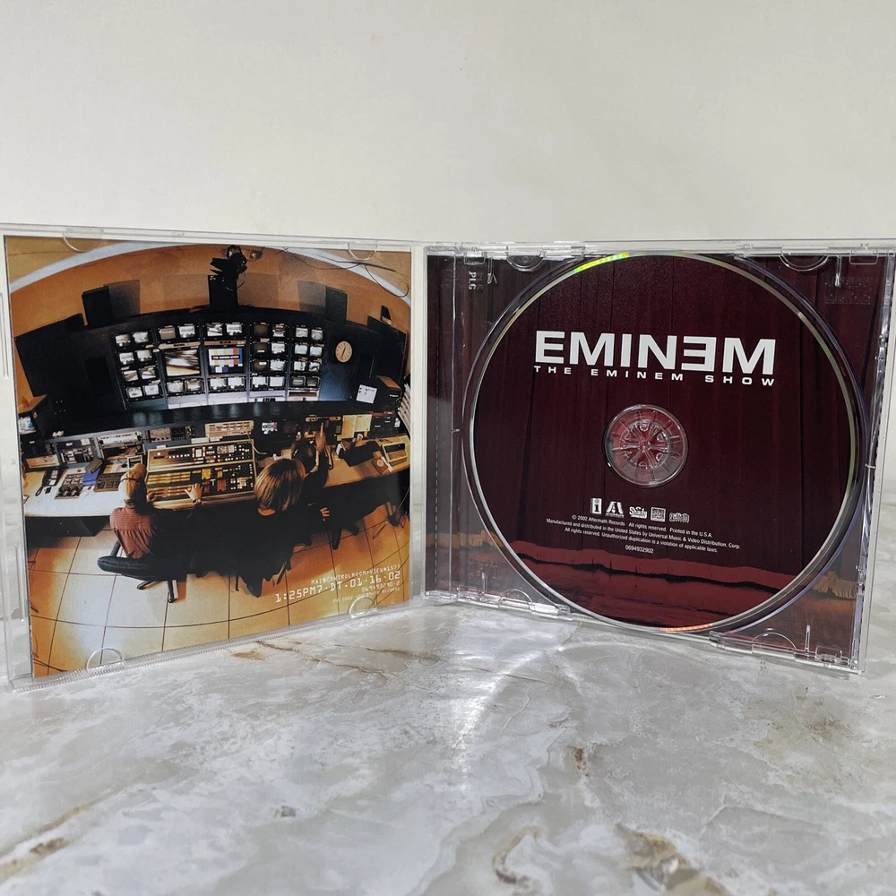VERY GREAT CONDITION NO SCRATCHES Experience the iconic music of Eminem with this first edition of "The Eminem Show" on CD. This gem includes the original inner sleeve and cover, and features a red color scheme on a standard jewel case. The CD has been graded as Mint (M) and is a Parental Advisory release from 2002. With hits like "Lose Yourself" and "The Real Slim Shady," this album is a must-have for any fan of rap and hip-hop. The CD is ISC and Interscope Records labeled, and is a great addition to any music collection. Don't miss out on this opportunity to own a piece of music history.