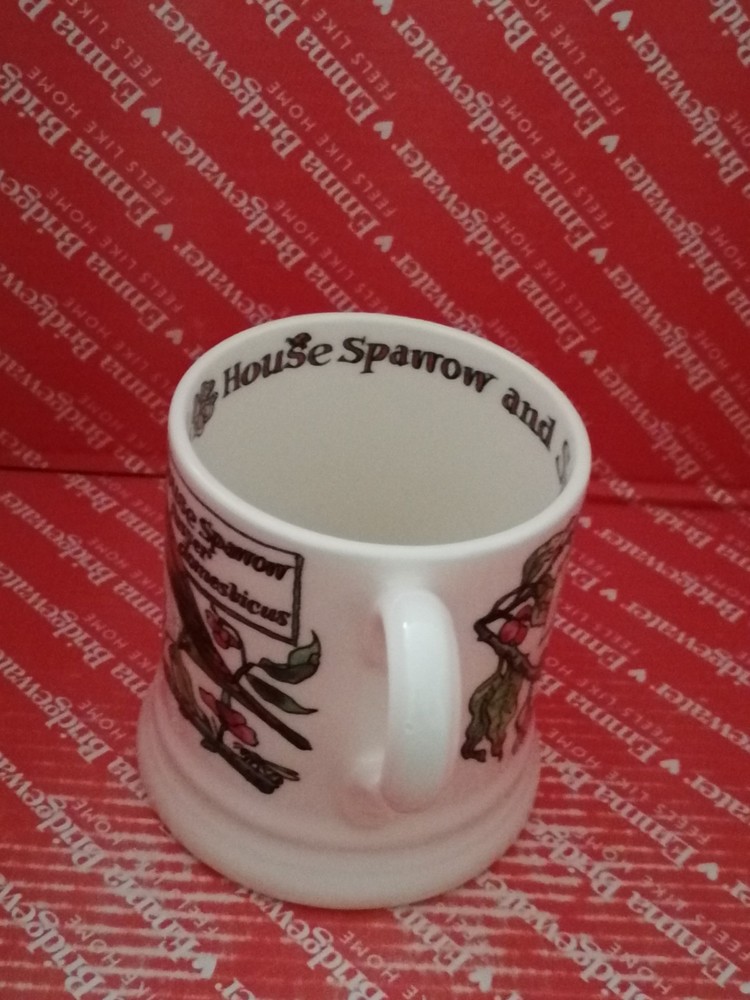 The Emma Bridgewater Birds in the Hedgerow Rosehip Half Pint Mug is a beautifully crafted ceramic mug featuring a charming Birds of Britain pattern. The round mug has a colourful multicoloured design that adds a touch of contemporary style to your tableware collection. With a capacity of half a pint, this handmade mug is perfect for enjoying tea or coffee on any occasion. The glossy finish and art pottery production technique ensure that this original piece is both stylish and durable, making it a lovely addition to any adult's kitchen or dining room.