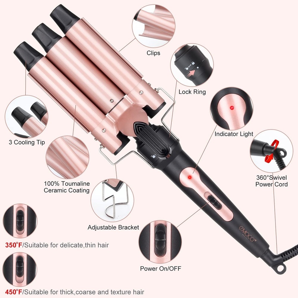 EAN: Does not apply Color: Rose Gold MPN: 3 Barrel Curling Iron Hair Crimper UPC: Does not apply Type: Does Not Apply Brand: EMOCCI PRO gtin13: Does not apply
