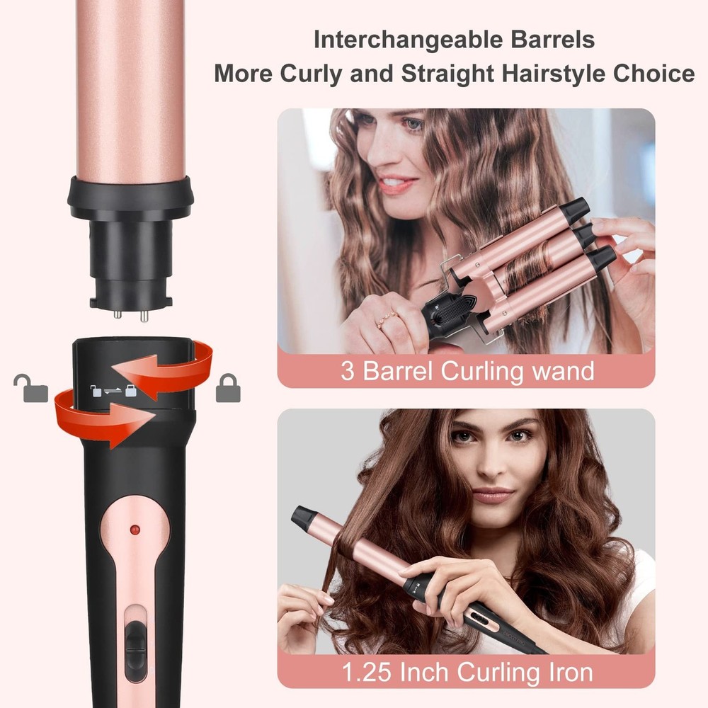 Emocci Pro Large 3 Barrel Wand Curling Iron Hair Crimper with 0.35-1.25 Inch Ceramic Barrels