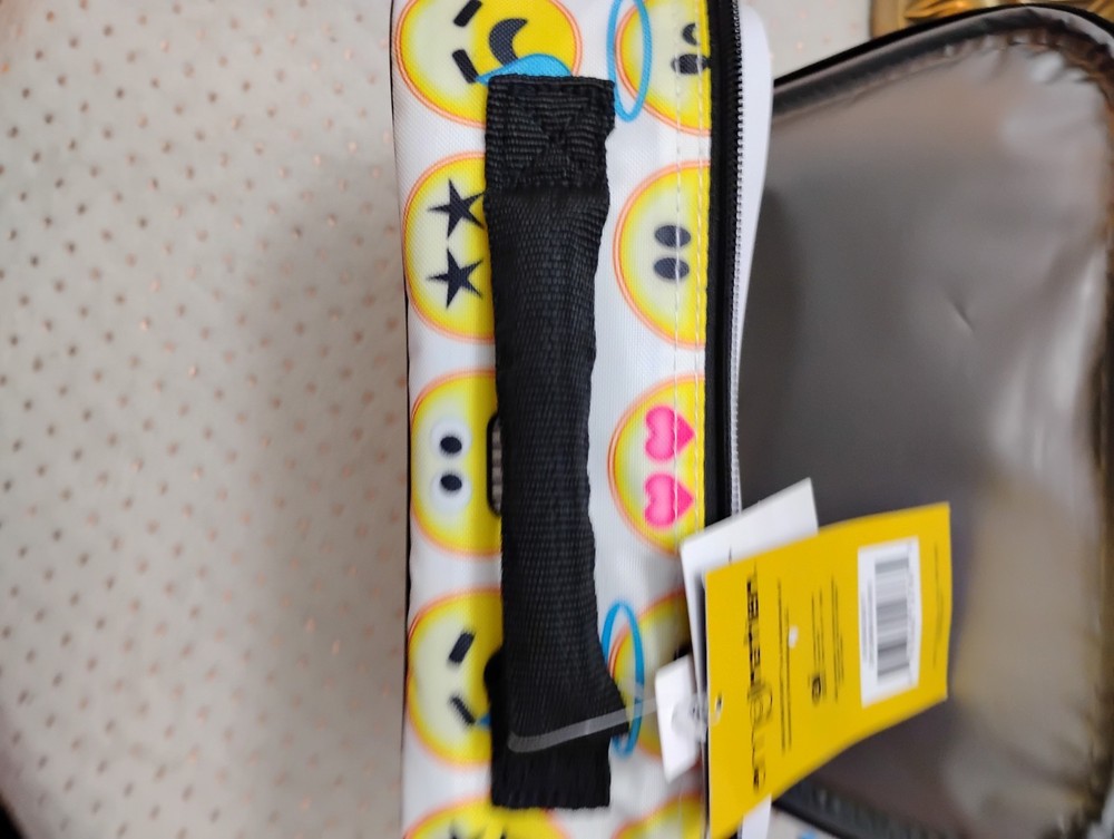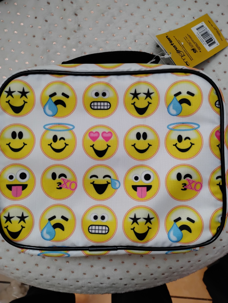 The EmojiNation Lunch Bag by Accessory Innovations is a fun and colorful option for carrying your lunch. Featuring a multicolor emoji print, this nylon bag is both durable and stylish. With dimensions of 7.5 inches in height and 9.5 inches in width, this lunch bag provides ample space for your meals and snacks. Perfect for adding a touch of personality to your lunchtime routine, this new-with-tags bag is sure to stand out in your kitchen or dining area.