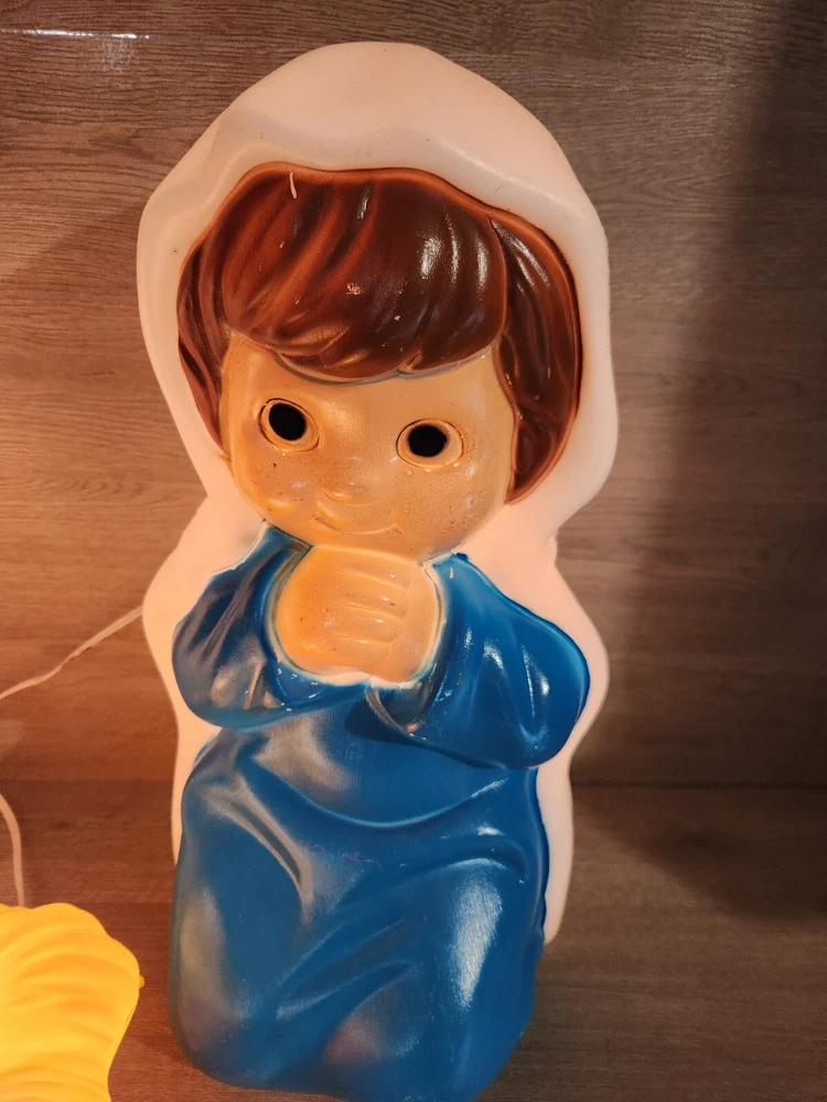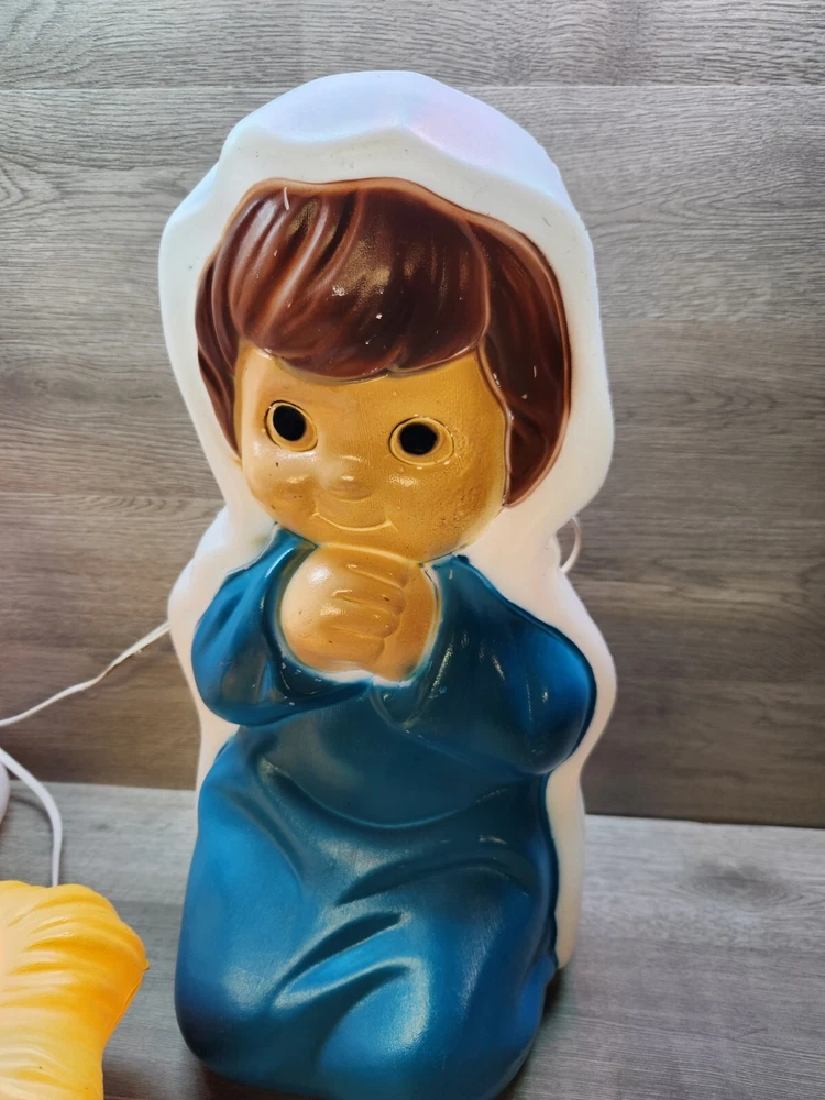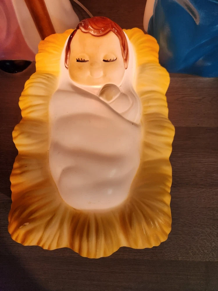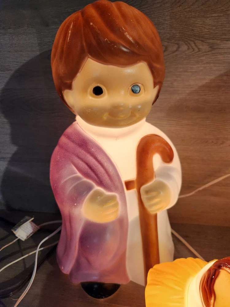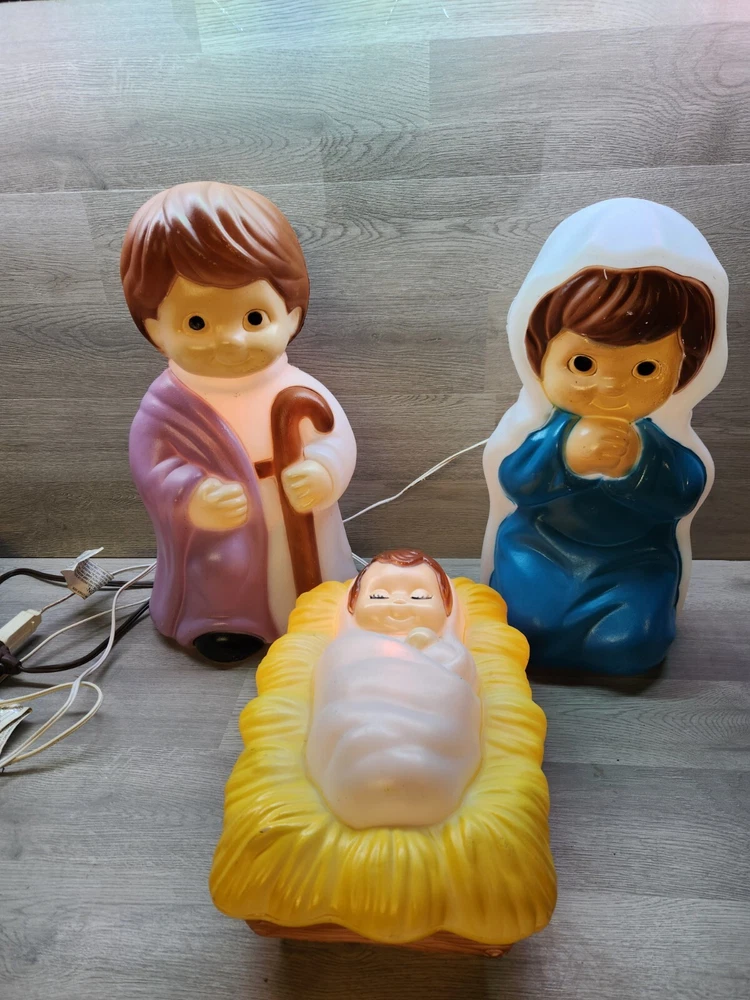 All 3 pieces in good overall condition with some minor paint chips that are typical with blowmolds this age. All 3 include lights