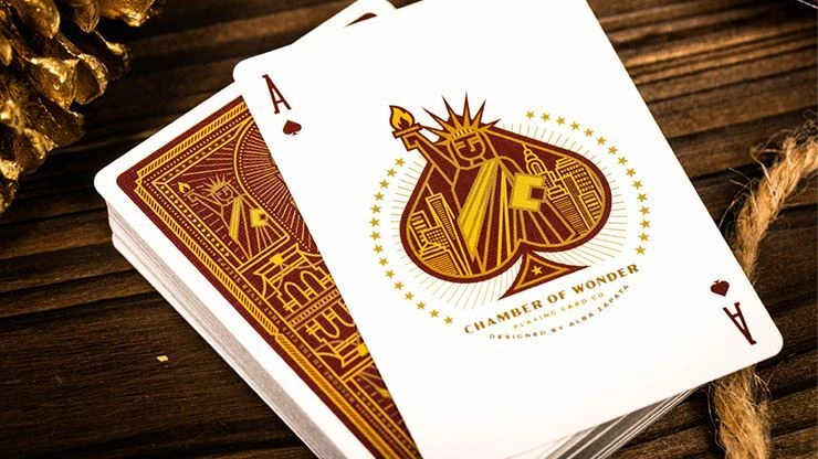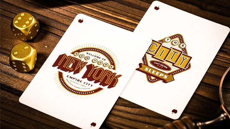 Please note: We only sell genuine playing cards from bonafide manufacturers. The tuck case of Empire City Playing Cards fully embodies the spirit of the city that never sleeps. At first glance, the New York City skyline is prominently featured, including iconic buildings like the Empire State, Chrysler, and the Statue of Liberty holding her torch at the corner. Below the skyline, the deck's title, "Empire City," is displayed in gold foil. A majestic eagle medallion with the quote "Where dreams really come true" is depicted beneath the title. Working with the designer on the back design was a highlight of this project for me. As a magician, I've always appreciated a sophisticated and refined aesthetic for my decks of cards. The Empire City Playing Cards are no exception, and I'm proud to say that this deck will be a staple in my everyday carry for a long time to come. Features: Fully embossed tuck case with shiny gold foils. Both edition tuck cases are made with a premium matte finish paper Sophisticated illustrations with gold foils in the inner tuck case Limited edition of 1200 decks with foil-numbered seal Presented in two editions - RED (Manhattan Sunrise) & GREEN (Brooklyn Twilight) Printed by Taiwan Playing Card Company (TWPCC). Legendary luxury finish. ____________________________________________________________________________________________ Are you ready to elevate your poker game with original playing cards? Visit our store today to browse our selection of authentic decks and start playing like a pro. Remember, when it comes to poker and other card games, we only sell original cards from genuine sources. Experience the difference for yourself and take your gameplay to new heights with premium quality playing cards.