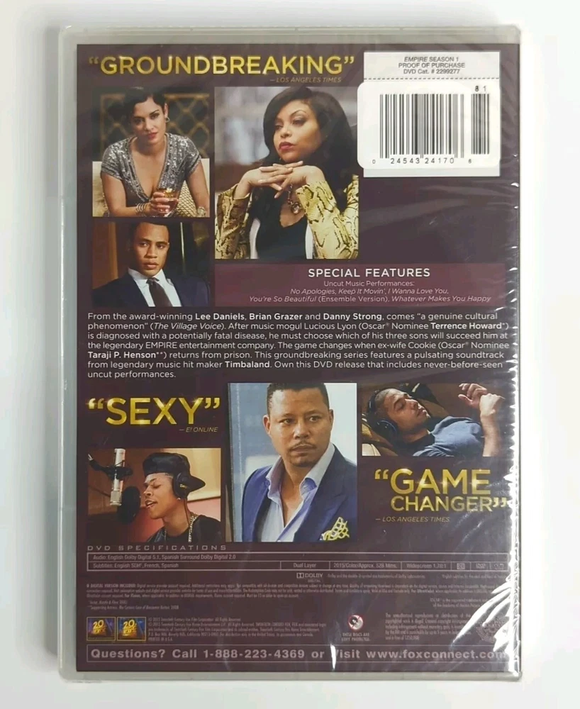 Director: Lee Daniels Type: TV Series Genre: Drama Actor: Terrence Howard Format: DVD Season: 1 UPC: Does not apply Edition: Box Set, Standard Edition Language: English Features: Uncut music performances Sub-Genre: Music Studio: 20th Century Fox Movie/TV Title: Empire gtin13: Does not apply Rating: NR