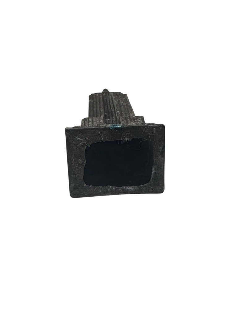 Miniature Empire State Building souvenir statue featuring a detailed textured exterior in a dark metal finish. A great collectible for NYC enthusiasts, architecture lovers, or travel memorabilia displays. Measures approximately 4 inches tall. Pre-owned in good condition with light surface wear consistent with age.