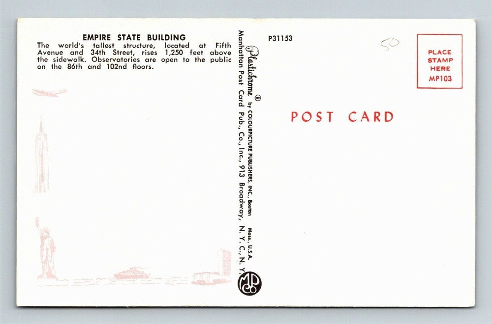 Empire State Building New York City Vintage Skyline Souvenir Postcard