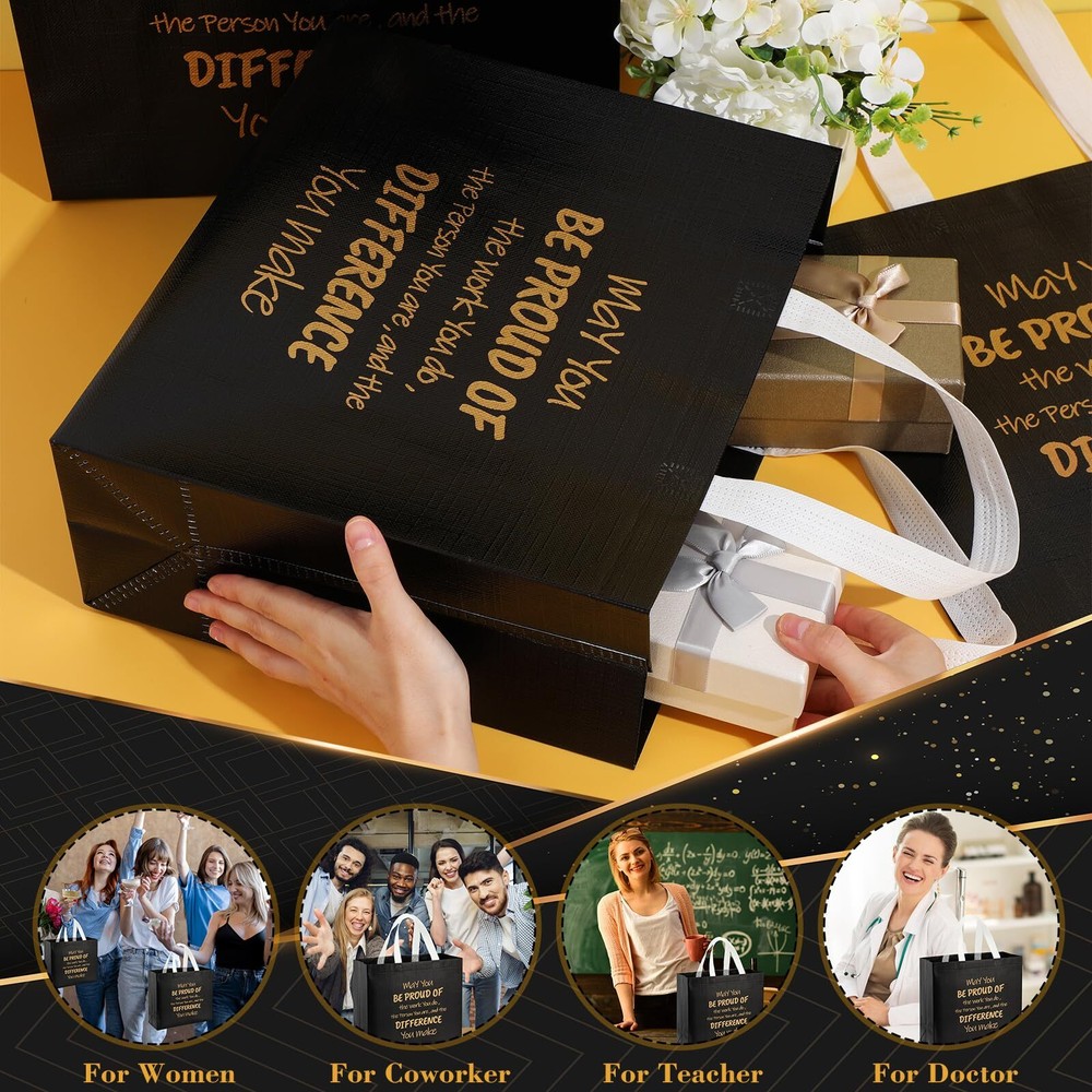 eBay Product Listing Welcome to Your Favorite My Store Your satisfaction is our top priority – Shop confidently 12 Pcs Employee Teacher Appreciation Gift Bag Glossy Reusable 12.2 x 4.7 x 11 Inch May You Be Proud Thank You Bags with Handles for Coworker Volunteer Secretary Nurse(Black) Item Gallery Item Description Sufficient Employee Appreciation Gifts: get 12 black gift bags with handles and 12 sturdy cardboard inserts to enhance load capacity; There are sufficient gift bags, so you can share your gratitude with multiple team members effortlessly Suitable Size: thoughtfully designed at about 12.2 x 4.7 x 11 inches/ 31 x 12 x 28 cm, these black gift bags can comfortably fit various items; From small tokens of appreciation like cups, snacks and candy to larger gestures like clothes, shoes and books, these bags can accommodate it all Reliable Non Woven Fabric Material: crafted from quality non woven fabric, these gift bags are not only long lasting, sturdy, lightweight, portable and reusable but also add an elegant feel; Your employees will notice the attention to detail put into their design Delicate Design: the black tote bags exude elegance; The printed message, "May You BE PROUD OF the work you do, the Person You are, and the DIFFERENCE You make" shows appreciation; Let your employees feel valued with these sophisticated bags Multipurpose and Various Occasions: suitable for various events, these reusable gift bags are not limited to just employee appreciation; They are also ideal for birthdays, teacher appreciation week, company annual meeting, office celebrations, and holiday presents Special Features Features: Simple to and carry: In addition to their beautiful design, these thank you gift bags are easy to and carry. Foldable and with sturdy handles, transportation is effortless. Nice appreciation gifts: Specifically designed for employees, these tote bags bulk are the ideal choice for showing gratitude. Create a positive work environment with these gift bags filled with appreciation and acknowledgment. Specifications: Material: non woven fabric Color: black, white, gold Size: about 12.2 x 4.7 x 11 inches/ 31 x 12 x 28 cm Package includes: 12 x Black gift bags with handles Notes: Manual measurement, please allow slight errors on size. The color may exist a slight difference due to different screen displays. Our Guarantee To You We offer fast shipping, free delivery, and 100% customer satisfaction guarantee. Not satisfied? Return your item for free within 30 days. 30-Day Free Returns Shipping Details Items will be sent to your eBay address. Please verify before purchasing. Typical delivery within 3-7 business days. Professional shipping services used for all orders. We ship to the continental US (48 states only). Unable to deliver to Alaska, Hawaii, or territories. No APO/FPO or PO Box deliveries available. We use eco-friendly packaging Payment Options We accept these secure payment methods: All transactions securely processed through eBay's payment system. Simple Returns 30-Day Satisfaction Promise Contact us through eBay messages within 30 days of delivery. We'll provide return instructions and our address. Return the item in its original condition. We'll process your refund within 48 hours of receiving the item. Get In Touch Have questions about your order? Contact us through eBay messaging for prompt assistance. We typically respond within 24 hours.