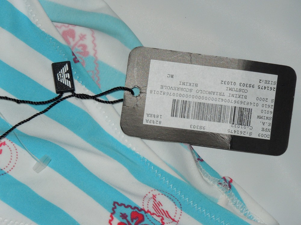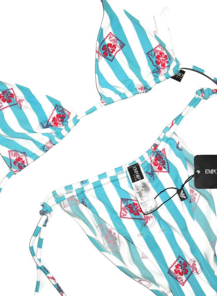 Lined: blue Accents: Logo Swim Top Style: Triangle Personalize: No gtin13: 1483696700420 Padding: No Department: Women Brand: Emporio Armani Character Family: bikini UPC: 1483696700420 Type: Bikini Theme: Designer Cup Size: na Color: Blue Number of Pieces: 2 Piece Shade: Blue Sub Style: bikini Pattern: Striped Character: bikini Main Color: blue Material: Nylon Features: logo print Vintage: No Garment Care: Hand Wash Only Swim Bottom Style: Bikini Style: Bikini Size: S Country of Origin: Unknown Size Type: Regular Strap Type: Spaghetti