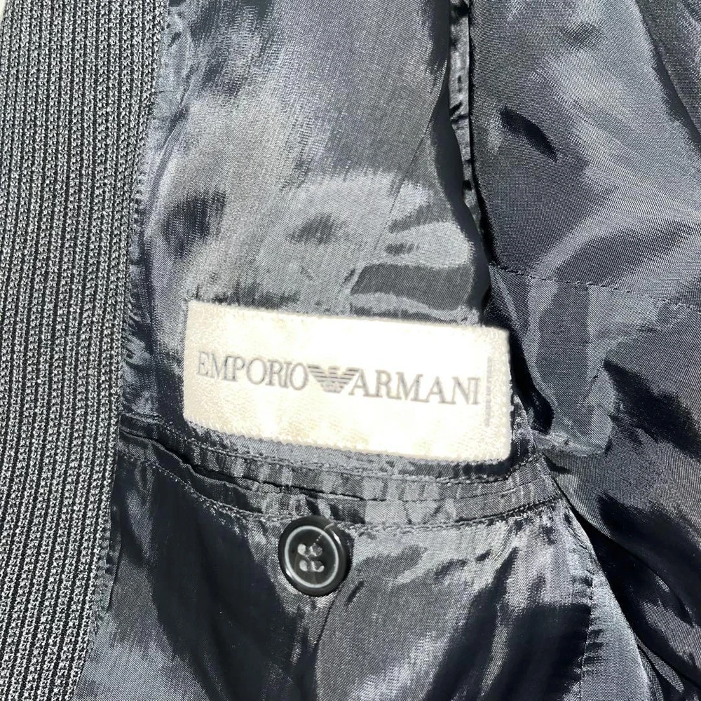 Emporio Armani Grey Stripe Suit Set No-Tuck Trousers & Top Free Size Used Key Features Emporio Armani gray striped suit set, including jacket and pants. The jacket features a full lining, decorative cuffs, and no-tuck design. Made of 82% polyester and 18% rayon. Free size with sleeve length 67cm, shoulder width 48cm, length 75.5cm, and chest width 54cm. Pants have a waist of 92cm, length 105cm, inseam 82cm, thigh width 39cm, and hem width 23cm. Used but verified by certified resale and recycling shops, with no authenticity issues. Slight color variations may occur due to monitor differences. Please note possible creases from packaging. We offer discounts for multiple purchases and price negotiations. Authenticity guaranteed; if counterfeit, we will address it. Item Specifics: - Brand: Emporio Armani - Material: Polyester 82%, Rayon 18% - Size: Free size - Sleeve Length: 67cm - Shoulder Width: Specifications Brand Emporio Armani Country Japan Product Description Description Thank you for your interest. This item is not new, but a used item that was given away. Please check the photos for the condition of the item. Please understand that the condition of the item is subjective and the standard of evaluation and feeling may vary from person to person, so please be aware that this is a used item before bidding. Please check the photos for the condition of the item, such as scratches and stains. To prevent problems, please feel free to contact us if you have any questions about the size or other details of the item. We will be happy to adjust the price. We will do our best to ship your order as soon as possible. We will do our best to ship as soon as possible, but there may be delays during the busy harvest season. Remarks All the products we sell are obtained and sold by pawn shops that are authorized brands, so all the products we handle have been authenticated to meet our strict standards for authenticity, so please buy with confidence. Payment Supports managed payments Please pay within 5 days after auction is finished. About Us We are located in Japan. It's our pleasure to make you happy by proposing our recommend item. If you have any questions or request about items, please feel free to ask us. International Buyers - Please Note: -Importduties, taxes, and charges are not included in the item price or shipping charges. These charges are the buyer's responsibility. -Please check with your country's customs office to determine what these additional costs will be prior to bidding/buying. -These charges are normally collected by the delivering freight (shipping) company or when you pick the item up - do not confuse them for additional shipping charges. -We do not mark merchandise values below value or mark items as - gifts - The US and International government regulations prohibit such behavior. Thank you for your understanding