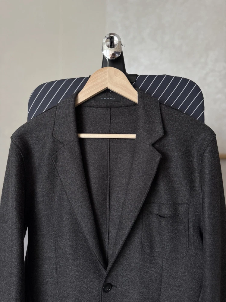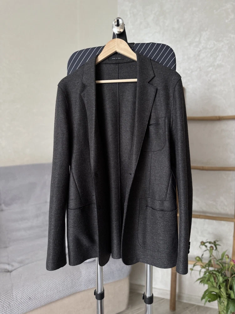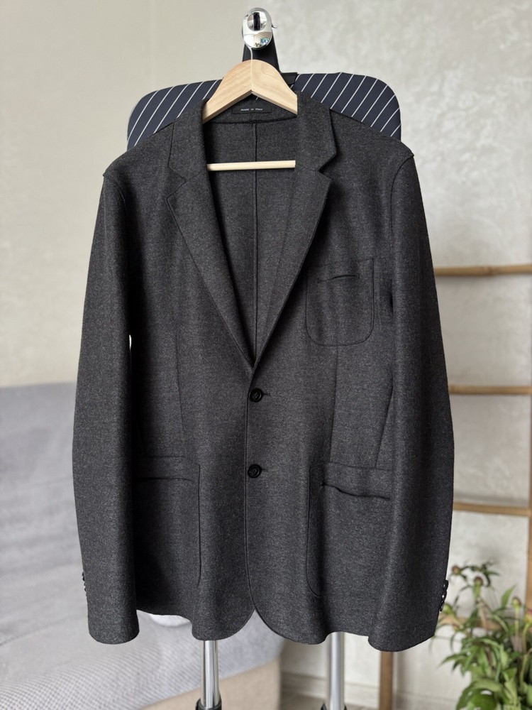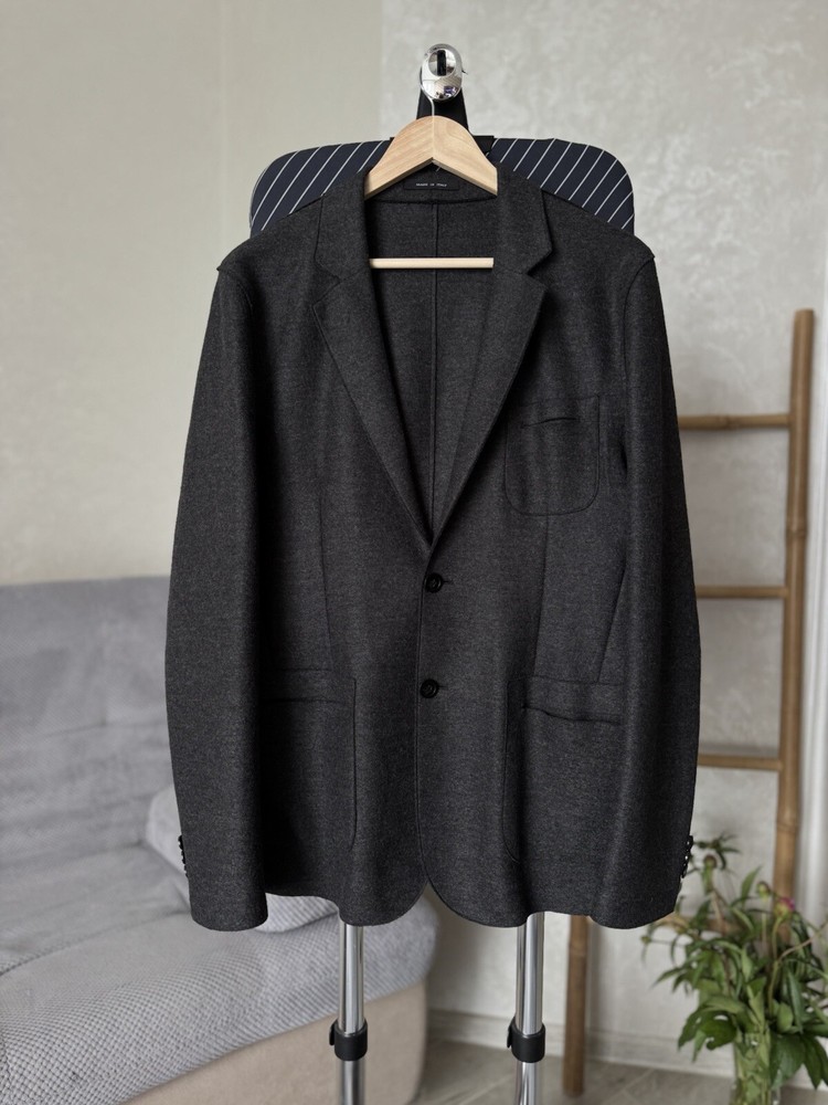 Emporio Armani Grey Virgin Wool Techno Tailoring Blazer Size 52 L