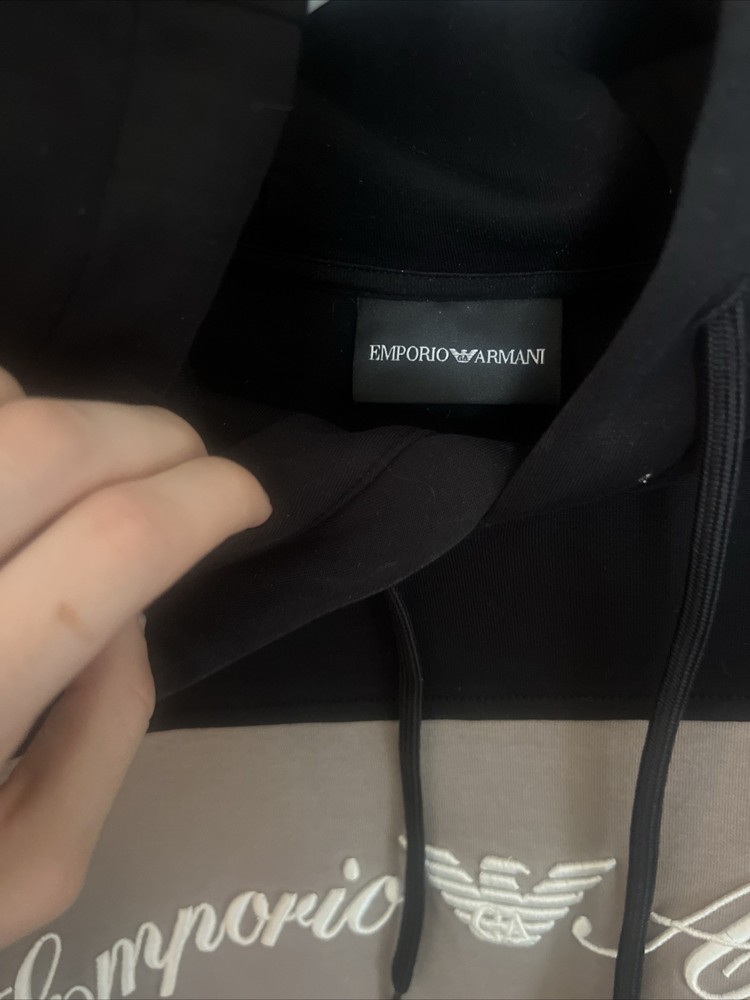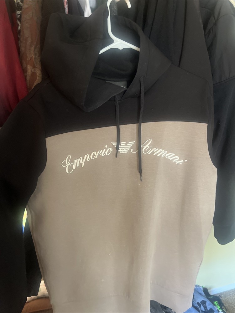 Crafted with comfort and style in mind, the Emporio Armani Hoodie in a sleek black hue is a versatile addition to any modern man's wardrobe. The pullover design features a cozy hood, long sleeves, and is made from soft, machine-washable cotton, ensuring both durability and ease of care. The hoodie is sized medium and follows regular sizing standards, making it an ideal fit for those who prefer their clothing to be both flattering and comfortable. Whether you're out for a walk or simply lounging at home, this garment is tailored for everyday wear and offers the perfect blend of functionality and a touch of luxury.