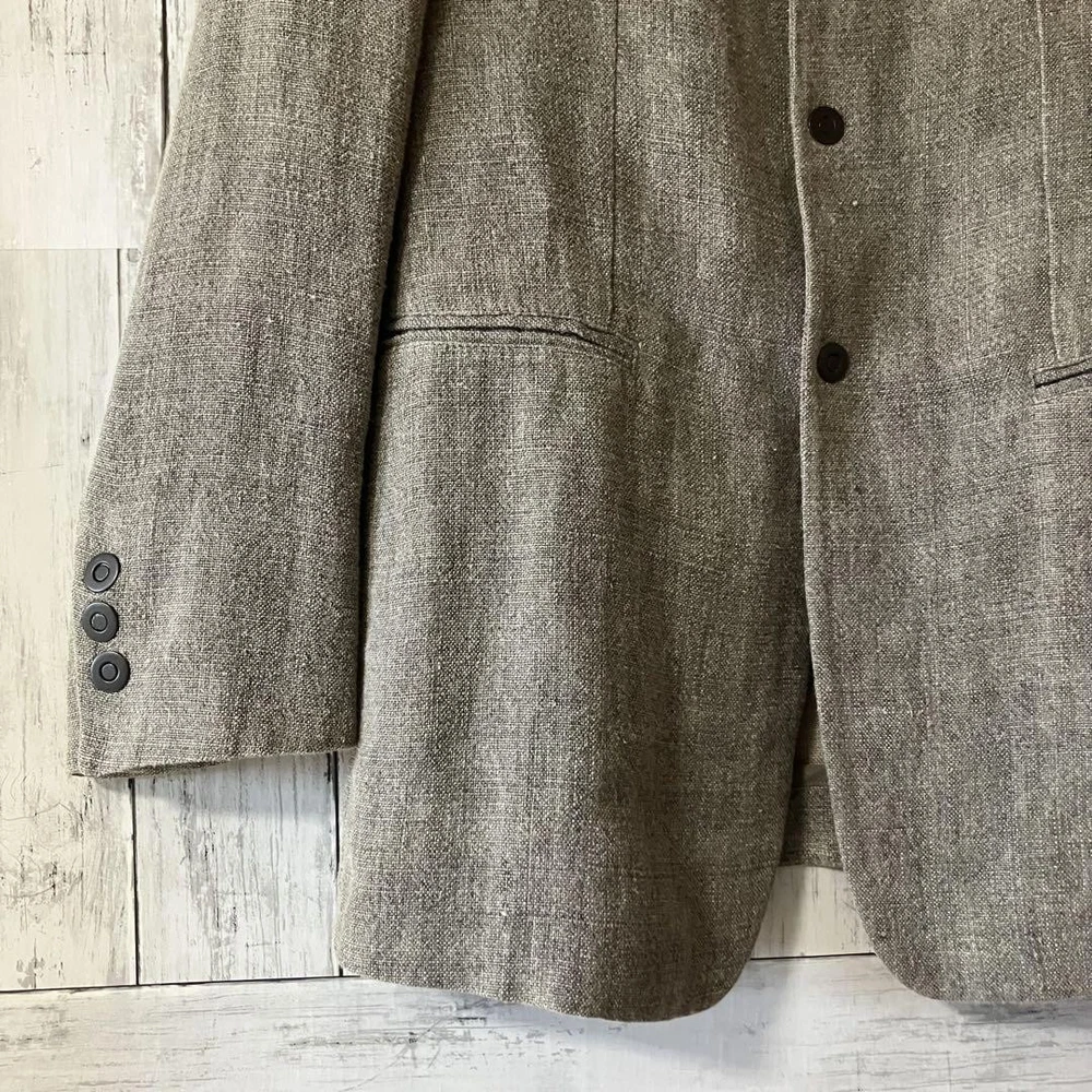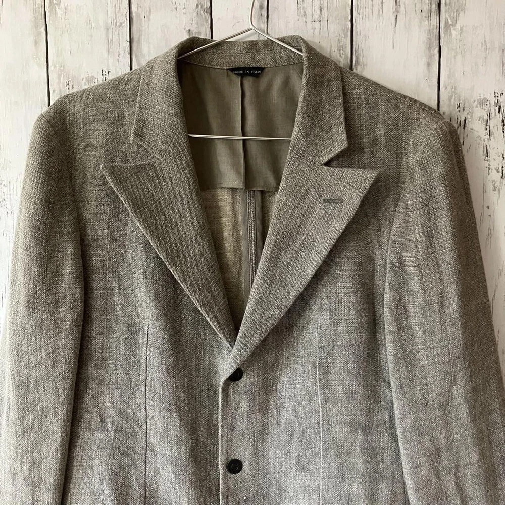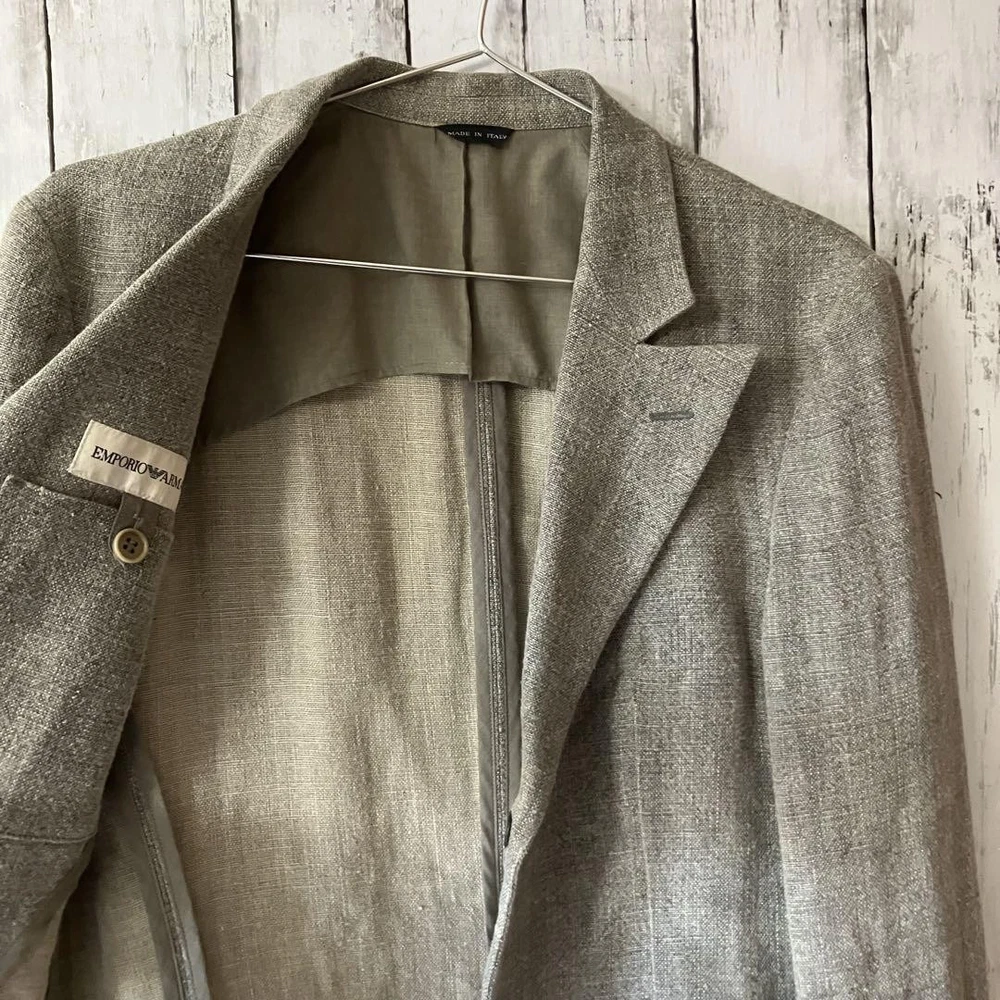 Emporio Armani Linen Blazer Men’s Summer No Shoulder Pads Notch Lapel Used Key Features Emporio Armani men's linen jacket, vintage 2000s Y2K style. Features a simple, high-end design with no shoulder pads, notch lapel, back slit, and open pockets. Made from French linen in gray, lightweight and perfect for all seasons. Size 46 (S), with a slim fit suitable for tight M sizes. Condition is excellent with minor interior tag wear; please note natural linen texture and occasional yarn slubs. Made in Italy. A versatile piece ideal for casual or formal wear, blending modern and classic fashion. Item Specifics: Brand: Emporio Armani Type: Jacket / Blazer Model: Giorgio Armani Japan 00s Y2K Material: 95% Linen, 5% Polyester Color: Gray Size: 46 (S) Country/Region of Manufacture: Italy Sleeve Length: Approximately 64cm Length: Approximately 75cm Shoulder Width: Approximately 43cm Bust: Approximately Specifications Brand Emporio Armani Country Japan Product Description Description Thank you for your interest. This item is not new, but a used item that was given away. Please check the photos for the condition of the item. Please understand that the condition of the item is subjective and the standard of evaluation and feeling may vary from person to person, so please be aware that this is a used item before bidding. Please check the photos for the condition of the item, such as scratches and stains. To prevent problems, please feel free to contact us if you have any questions about the size or other details of the item. We will be happy to adjust the price. We will do our best to ship your order as soon as possible. We will do our best to ship as soon as possible, but there may be delays during the busy harvest season. Remarks All the products we sell are obtained and sold by pawn shops that are authorized brands, so all the products we handle have been authenticated to meet our strict standards for authenticity, so please buy with confidence. Payment Supports managed payments Please pay within 5 days after auction is finished. About Us We are located in Japan. It's our pleasure to make you happy by proposing our recommend item. If you have any questions or request about items, please feel free to ask us. International Buyers - Please Note: -Importduties, taxes, and charges are not included in the item price or shipping charges. These charges are the buyer's responsibility. -Please check with your country's customs office to determine what these additional costs will be prior to bidding/buying. -These charges are normally collected by the delivering freight (shipping) company or when you pick the item up - do not confuse them for additional shipping charges. -We do not mark merchandise values below value or mark items as - gifts - The US and International government regulations prohibit such behavior. Thank you for your understanding