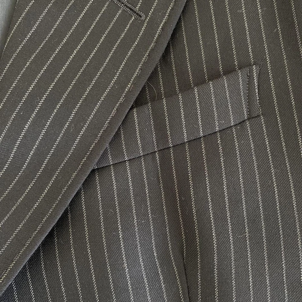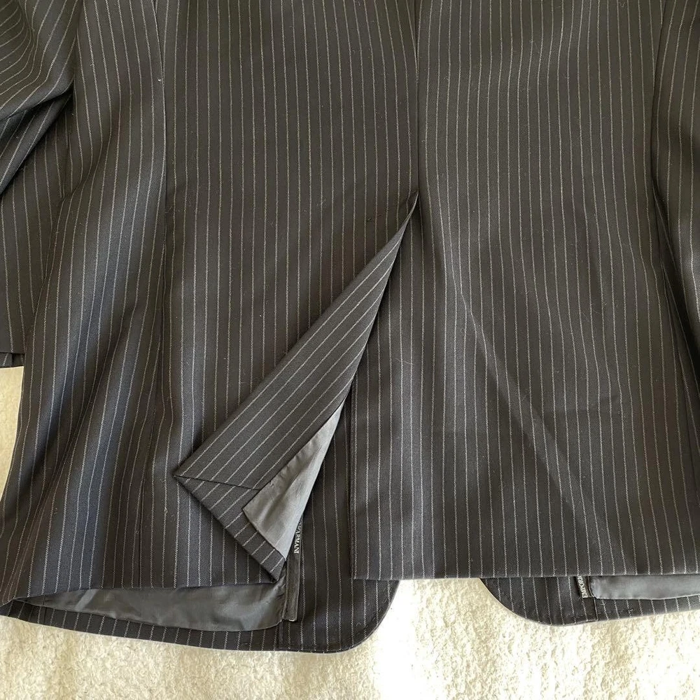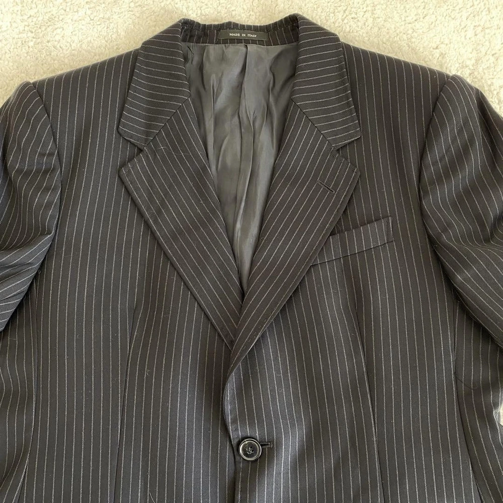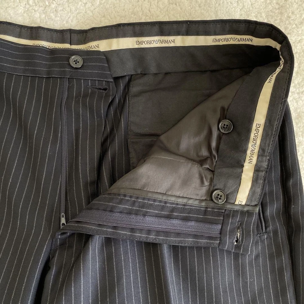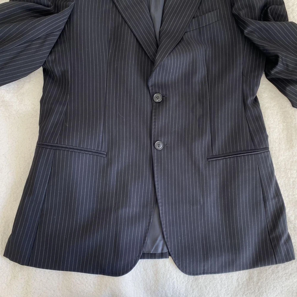 This Emporio Armani suit is a fantastic find—classic navy stripes, sharp Italian tailoring, and premium wool fabric. The jacket fits impeccably with structured shoulders, and the trousers maintain a crisp, polished finish. Perfect for formal occasions, it offers luxury at a great value. Photos accurately show the condition and color. Highly recommended for a refined look!