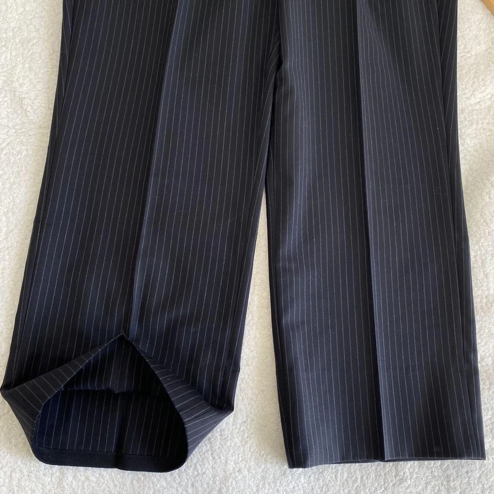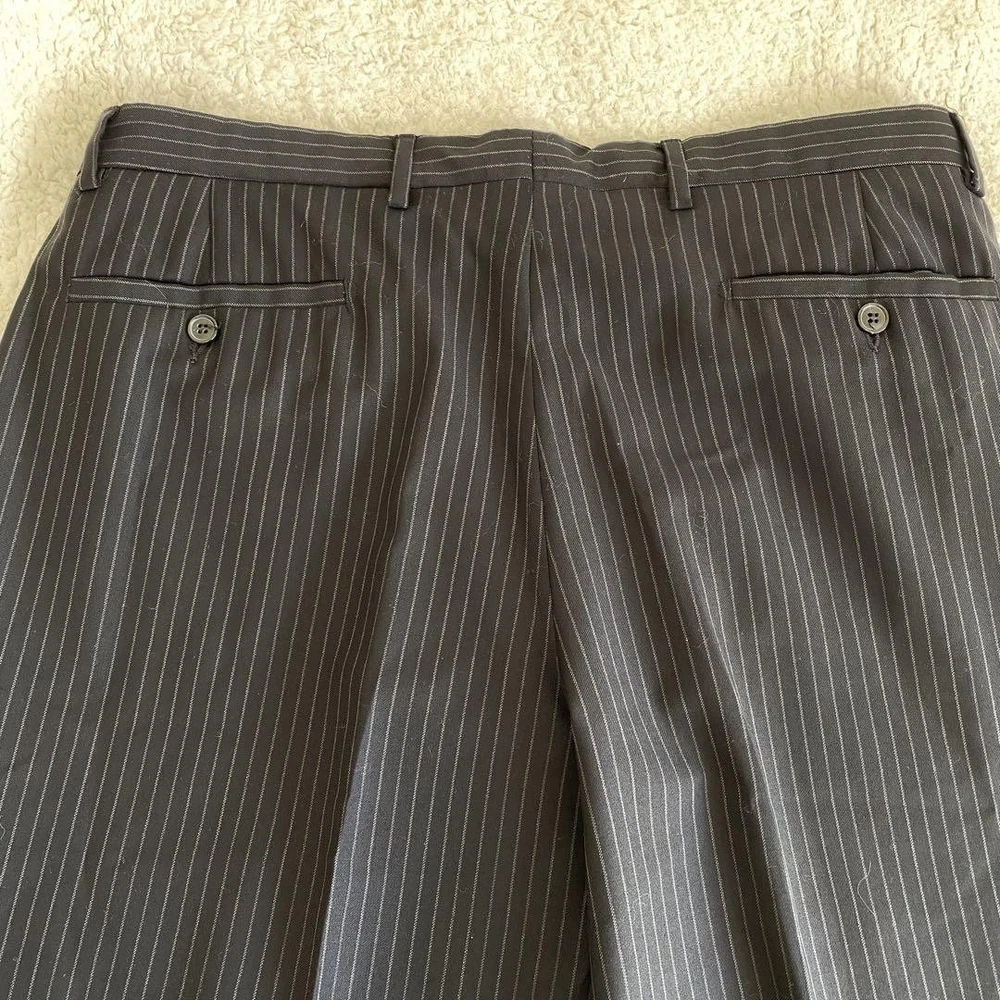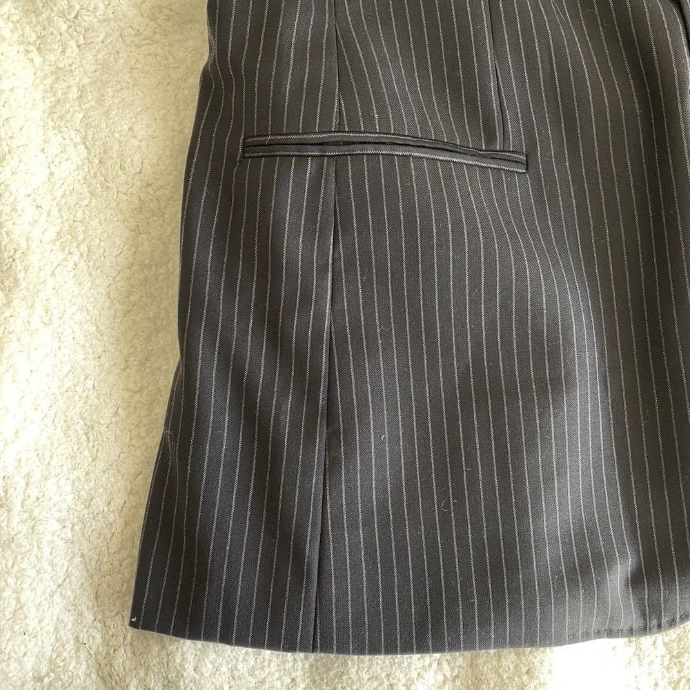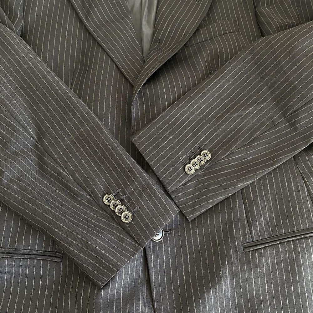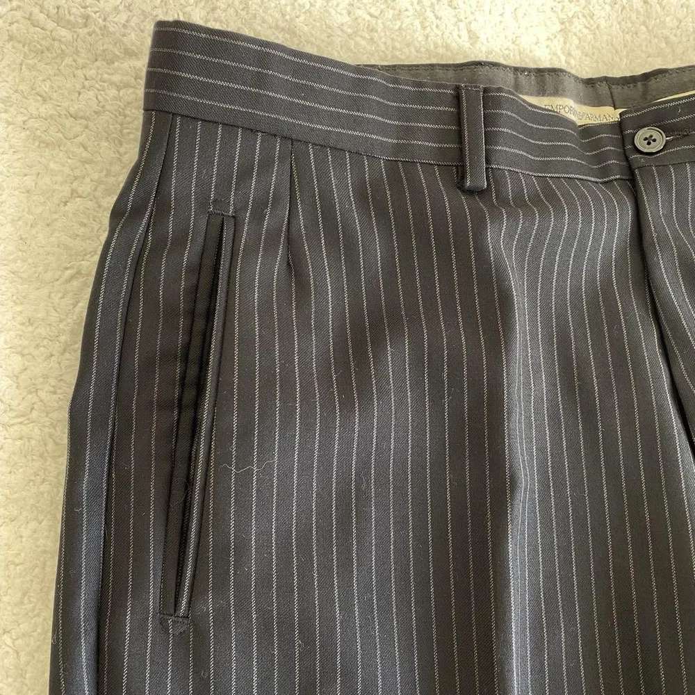 This Emporio Armani suit is a fantastic find—classic navy stripes, sharp Italian tailoring, and premium wool fabric. The jacket fits impeccably with structured shoulders, and the trousers maintain a crisp, polished finish. Perfect for formal occasions, it offers luxury at a great value. Photos accurately show the condition and color. Highly recommended for a refined look!