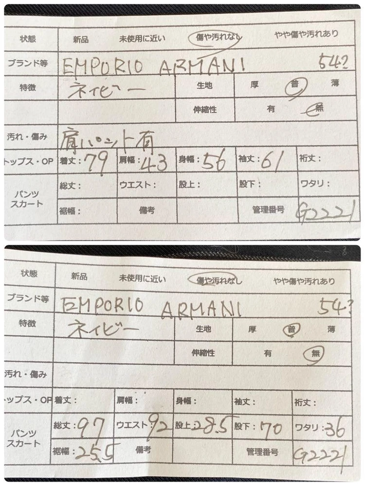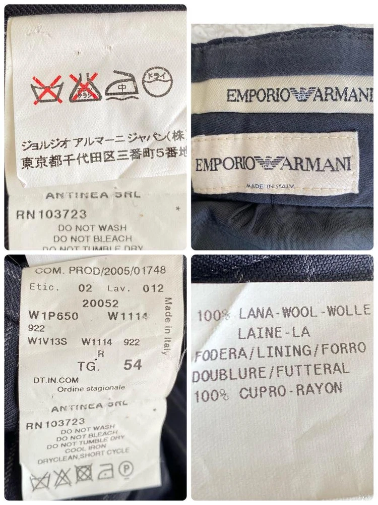 Emporio Armani Men's Suit Stripe Italy 54 Used Formal Clothing Key Features Elevate your wardrobe with this Emporio Armani jacket and matching trousers. Crafted in Italy, the navy wool jacket features shoulder pads for a sharp silhouette, while the trousers have center press creases for a polished look. Made from 100% wool, these pieces offer both style and quality. Please refer to the provided measurement chart for accurate sizing. Condition details and color are shown in the photos; the navy color is close to the distant shot. Ideal for those seeking sophisticated Italian fashion. Item Specifics: - Brand: Emporio Armani - Product Type: Suit Jacket and Trousers - Material: Wool 100% - Country/Region of Manufacture: Italy - Color: Navy - Condition: Used, see photos for details Specifications Brand Emporio Armani Country Japan Product Description Description Thank you for your interest. This item is not new, but a used item that was given away. Please check the photos for the condition of the item. Please understand that the condition of the item is subjective and the standard of evaluation and feeling may vary from person to person, so please be aware that this is a used item before bidding. Please check the photos for the condition of the item, such as scratches and stains. To prevent problems, please feel free to contact us if you have any questions about the size or other details of the item. We will be happy to adjust the price. We will do our best to ship your order as soon as possible. We will do our best to ship as soon as possible, but there may be delays during the busy harvest season. Remarks All the products we sell are obtained and sold by pawn shops that are authorized brands, so all the products we handle have been authenticated to meet our strict standards for authenticity, so please buy with confidence. Payment Supports managed payments Please pay within 5 days after auction is finished. About Us We are located in Japan. It's our pleasure to make you happy by proposing our recommend item. If you have any questions or request about items, please feel free to ask us. International Buyers - Please Note: -Importduties, taxes, and charges are not included in the item price or shipping charges. These charges are the buyer's responsibility. -Please check with your country's customs office to determine what these additional costs will be prior to bidding/buying. -These charges are normally collected by the delivering freight (shipping) company or when you pick the item up - do not confuse them for additional shipping charges. -We do not mark merchandise values below value or mark items as - gifts - The US and International government regulations prohibit such behavior. Thank you for your understanding